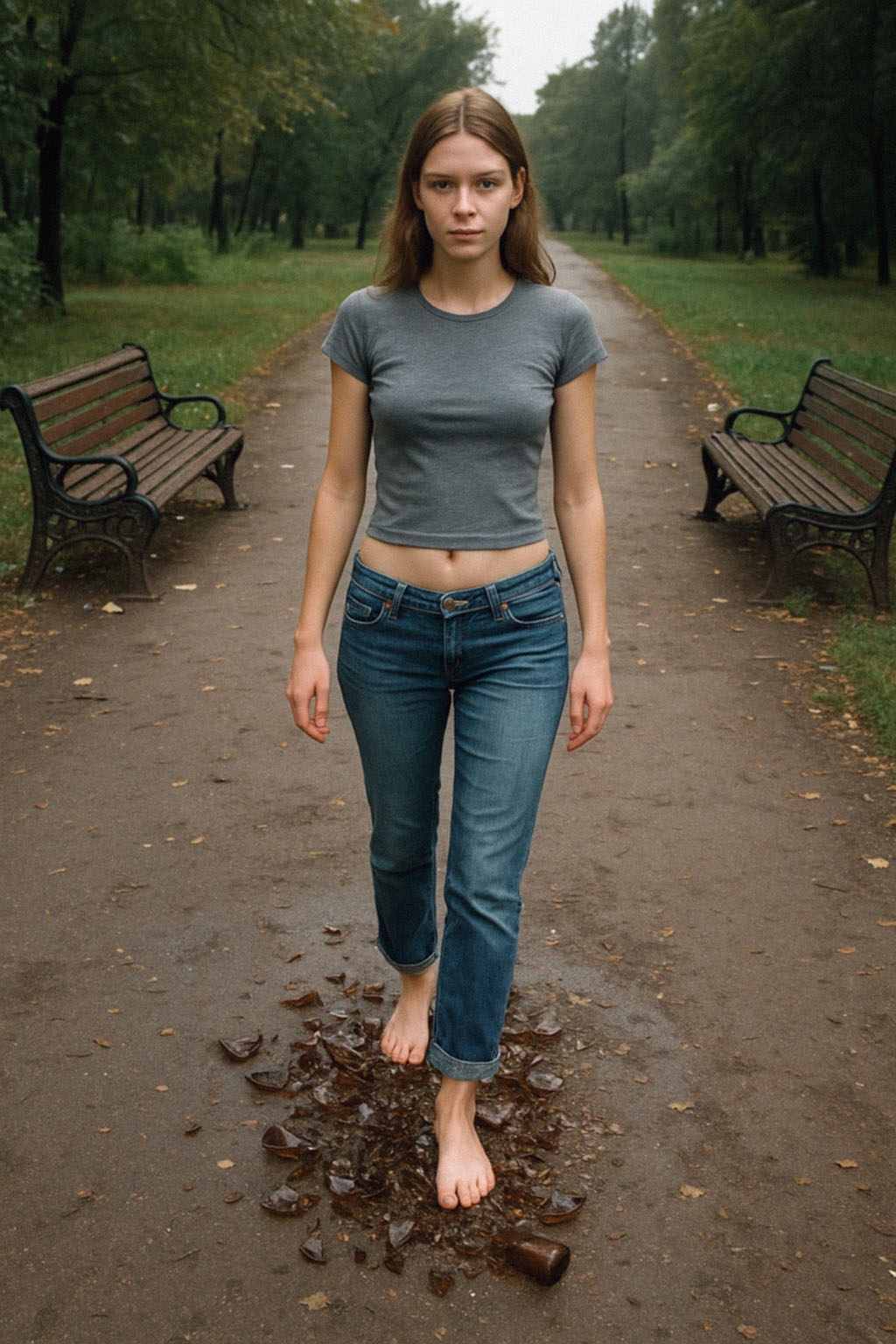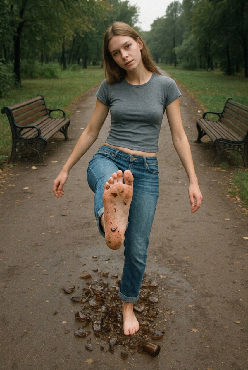 >>330218482>>330218546 Тю, и ни одно не впилось. И вообще, откуда стёкла в кинотеатре, что за ерунда? Надо, чтобы на полу были, а она по ним ходила, а потом показала зрителю результат.