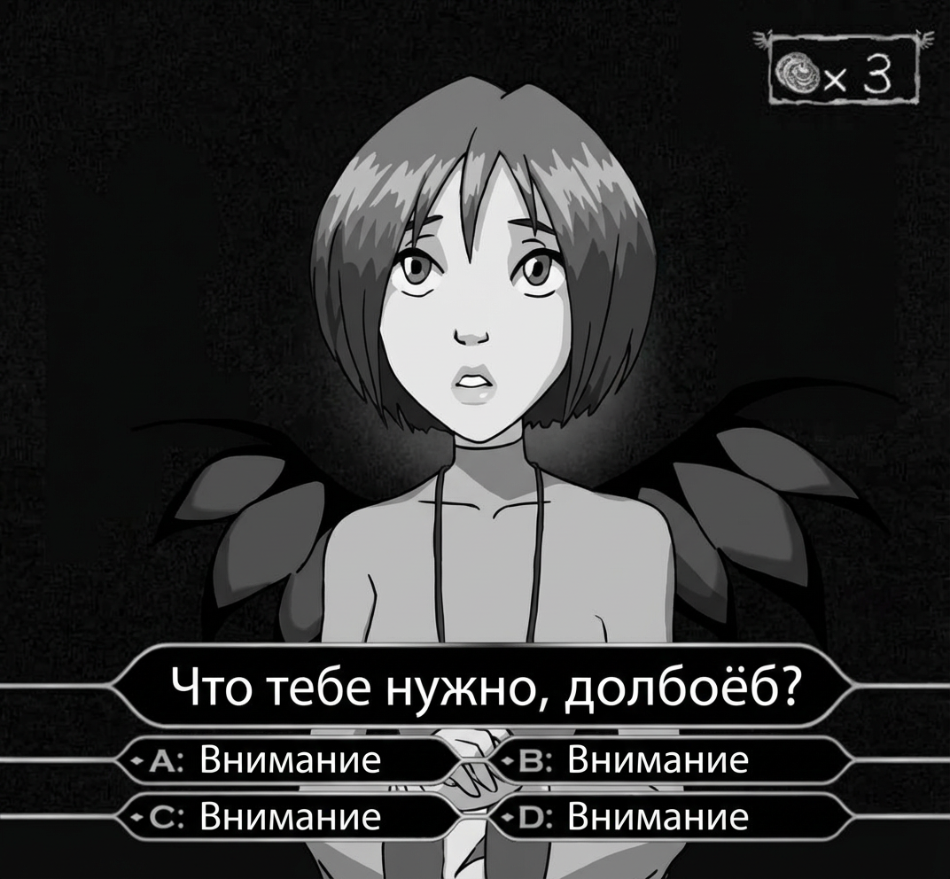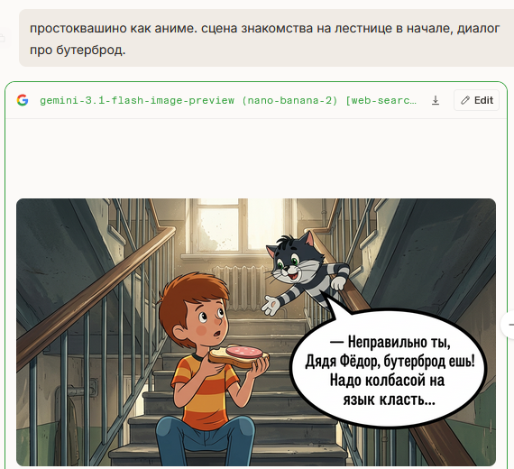 На днях случайно вкудахтере в ленте наткнулся на группу, там за кэш обрабатывают ёбла всяким гречам. Вроде даром тоже делают на энтузиазме. На дворе 2026 год, запросы обработки на уровне аватарок в одноклассниках нулевых годов. "Сделойте меня невестой с цветами\Обработайте малышочка кабута он ангел\бес\хуебес\А кабуто я с волками на фоне звёзд\А кабута мы целуемся на фоне голубей и неба". Качество обработки как будто они пользуются даже не бананой, а каким-то китайским пиздецом, но электорат счастлив.