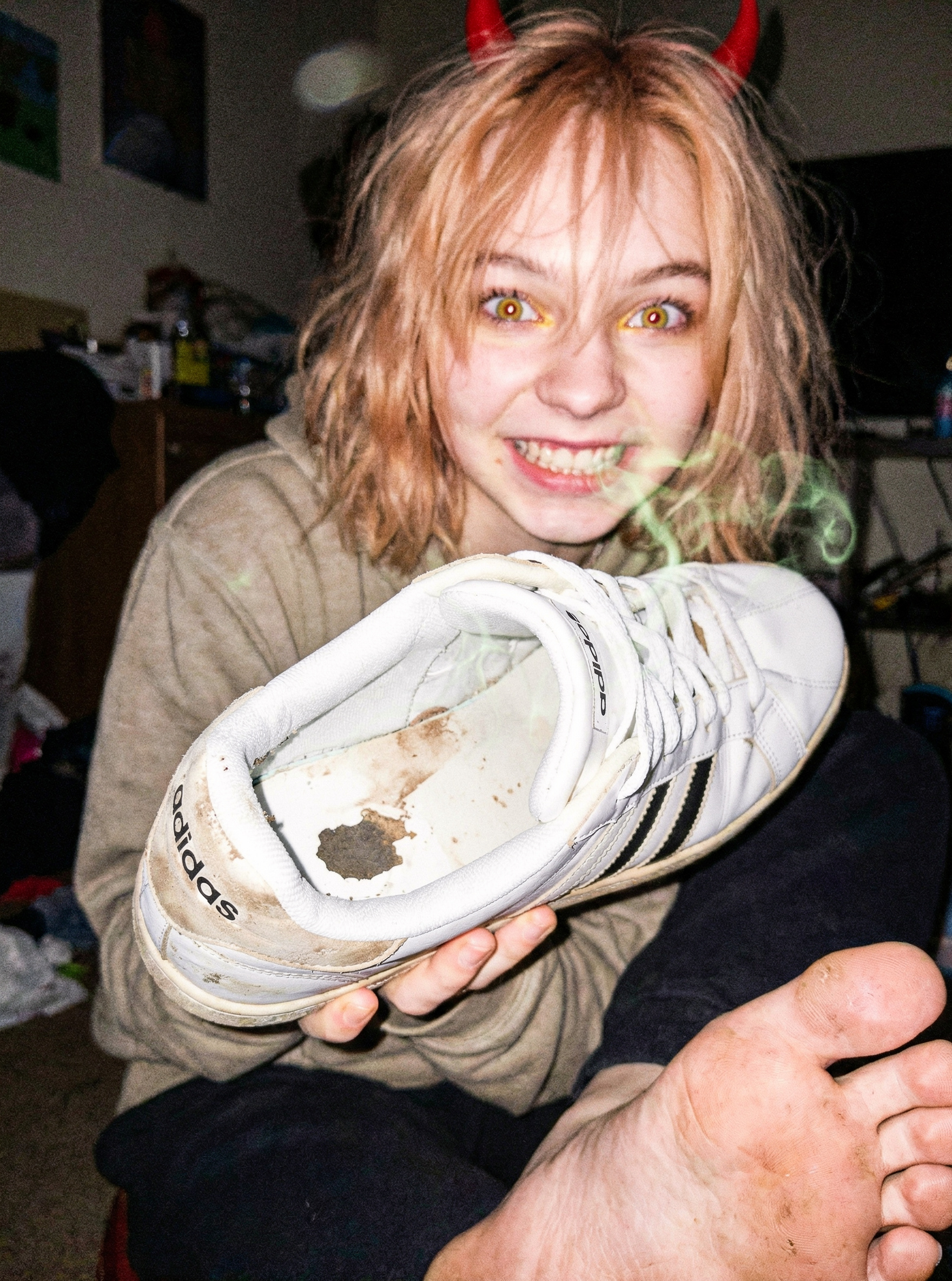 Она залезла мне в задницу, вытащила оттуда шмат говна и положила себе в рот. Я решил поддержать её порыв и стал целоваться с ней; мы перекатывали этот кусок говна изо рта в рот, пока он совсем не растаял. После этого мы целый день занимались сексом в разных позах, и было улётно от того, что, что бы мы ни делали, изо рта несло дерьмом. Мы ебались и целовались, ебались и целовались. Было очень круто.
