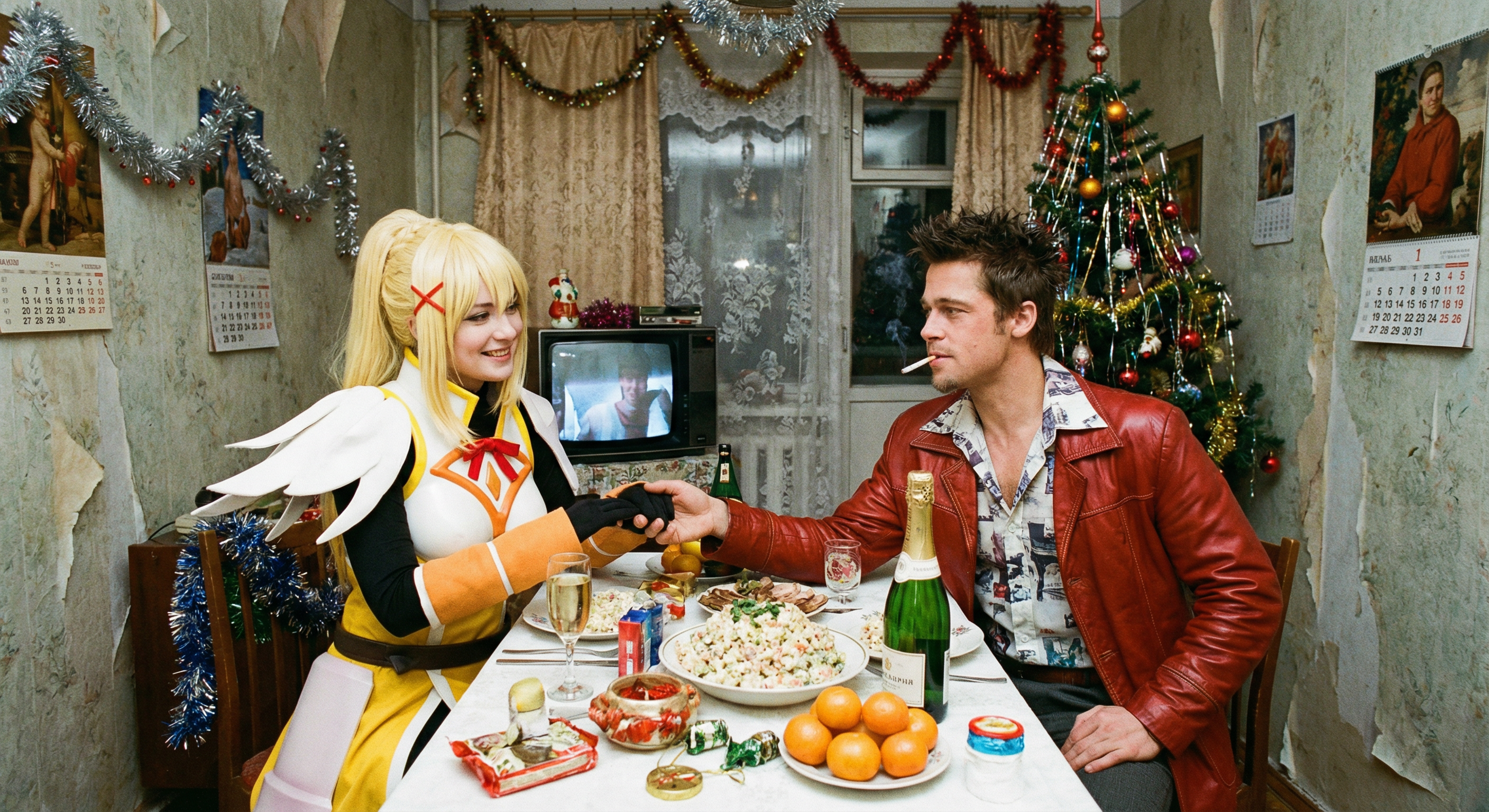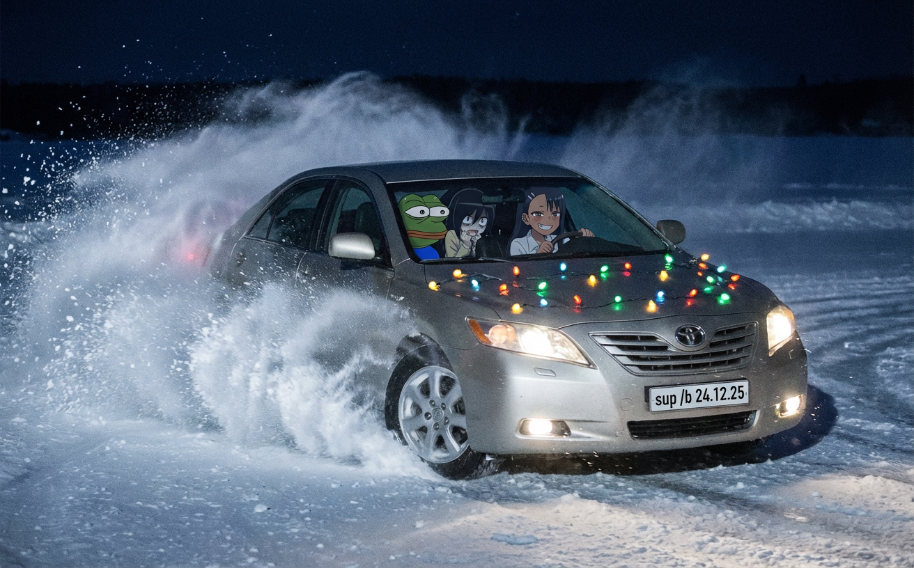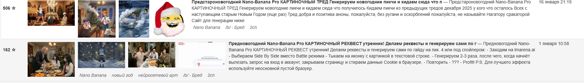 >>330239165 помню, как наткнулся на первые нано банано треды новогодние, смотрю, а там Тайлер Дерден сидит за столом с оливьешкой, какое-то аниме в постсовке, икатило со спесивцевым и питюшкиным, ебать я охуел. какое-то веселье, и как я был рад, что утром тред не утонул и я смог скачать все тогдашние пикчи, которые я в своем цифровом мусоре нихуя не найду