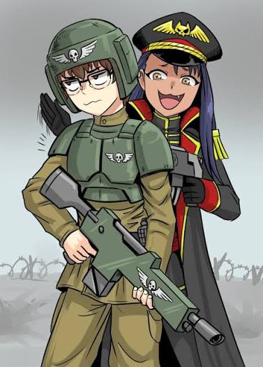 Профиль Слуги: Комиссар Нагаторо Класс: Avenger (или Ruler, в зависимости от того, насколько она «присматривает» за своим Гвардейцем-Сэмпаем). Источник: Warhammer 40,000 x Don’t Toy With Me, Miss Nagatoro. Мировоззрение: Хаотично-Доброе (но для Гвардии — Непреклонно-Законное). Параметры (Stats) Сила: C Выносливость: B Ловкость: A Мана: D Удача: EX (Всегда выживает там, где её Сэмпай должен был погибнуть) Благородный Фантазм: A Классовые навыки Мститель (Rank A): Накапливает ярость, когда кто-то другой, кроме неё, «издевается» над её целью (Сэмпаем). Увеличивает генерацию маны при получении урона. Коррекция Памяти (Rank B): Она никогда не забывает ни единого проступка или неловкого момента своего подопечного, используя их для психологического давления. Личные навыки Summary Execution (Издевательская Казнь) Rank B: Способность поддерживать мораль в войсках. Вместо пули в затылок она использует «язвительные подколы», которые заставляют гвардейцев бежать в атаку от стыда быстрее, чем от страха перед врагом. Sadistic Charisma Rank C+: Особый вид харизмы, действующий на «слабых духом» персонажей. Усиливает атаку союзников, но вешает на них дебафф «Смущение». Eye of the Mind (False) Rank A: Интуитивное понимание, когда её «цель» пытается увильнуть от обязанностей или скрывает что-то еретическое. Благородный Фантазм (Noble Phantasm) «Don’t Toy With Me, Heretic Senpai!» — Гнев Имперского Садиста Ранг: A Тип: Анти-Юнит (или Анти-Армия при поддержке полка) Вызывает проекцию ужасающей ауры Комиссара. Цель оказывается в замкнутом пространстве (Мрачная библиотека или окоп), где Нагаторо подвергает её бесконечному циклу психологического «буллинга» и обстрелу из болт-пистолета. Противник теряет волю к сопротивлению и получает статус «Сломленный Дух».