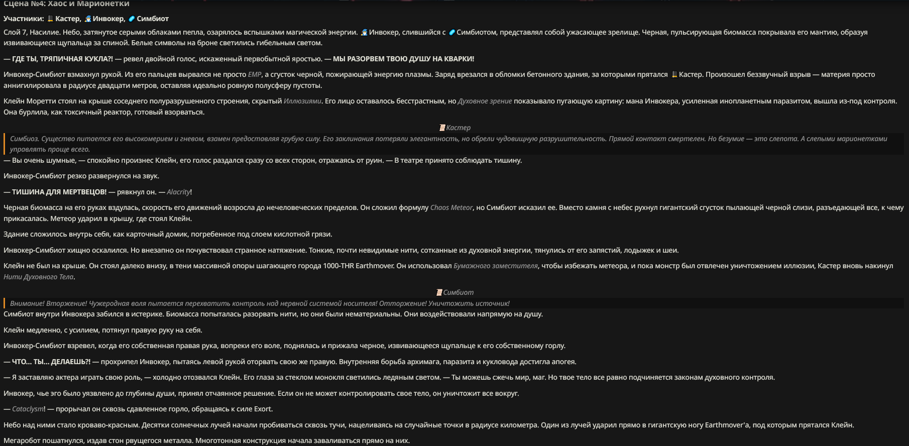 Благородный Фантазм “Ars Magna — Infinite Invocation” (EX) Тип:Анти-Армия / Анти-Реальность Invokerснимает все ограничения на количество, сложность и стоимость заклинанийна короткий период. Эффекты: одновременное поддержание десятков формул; комбинирование стихий без конфликтов; частичное переписывание физических законов в зоне действия; при перегрузке — разрушение пространства, времени или обоих. нагрузка на тело риск коллапса области боя