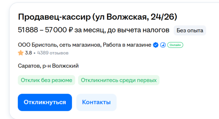 >>330489021 Ты видимо никогда сам не работал на говноработах или троллишь раз предоставляешь пруфы с зарплатой на хх. Эта зарплата для привлечения внимания. Когда начнёшь работать, то к своему удивлению обнаружишь, что такую зарплату ты получишь если будешь работать 5/2 по 12 часов и твой магазин будет выполнять все возможные планы что буквально невозможно