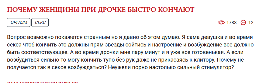 1. Эскалация (The Escalation Effect): Мозг привыкает к дофамину, который выделяется при просмотре «обычного» контента. Со временем ему нужно больше стимуляции для получения того же уровня удовольствия. Поэтому ты переходишь к более нишевым, жестким или табуированным темам (в твоем случае — ссующие, трапы и т.д.). Ты ищешь не столько сексуального удовлетворения, сколько новизны и шока, чтобы пробить дофаминовую защиту. 2. Компульсивное поведение: Это уже не желание, а навязчивая потребность снять напряжение, тревогу или скуку. Как «ломка». 3. Стыд и порочный круг: После разрядки приходит чувство вины и стыда («фу, зачем я это сделал?»). Это чувство вызывает стресс, а лучший способ снять стресс, который знает твой мозг — снова заняться привычным делом. Круг замыкается.