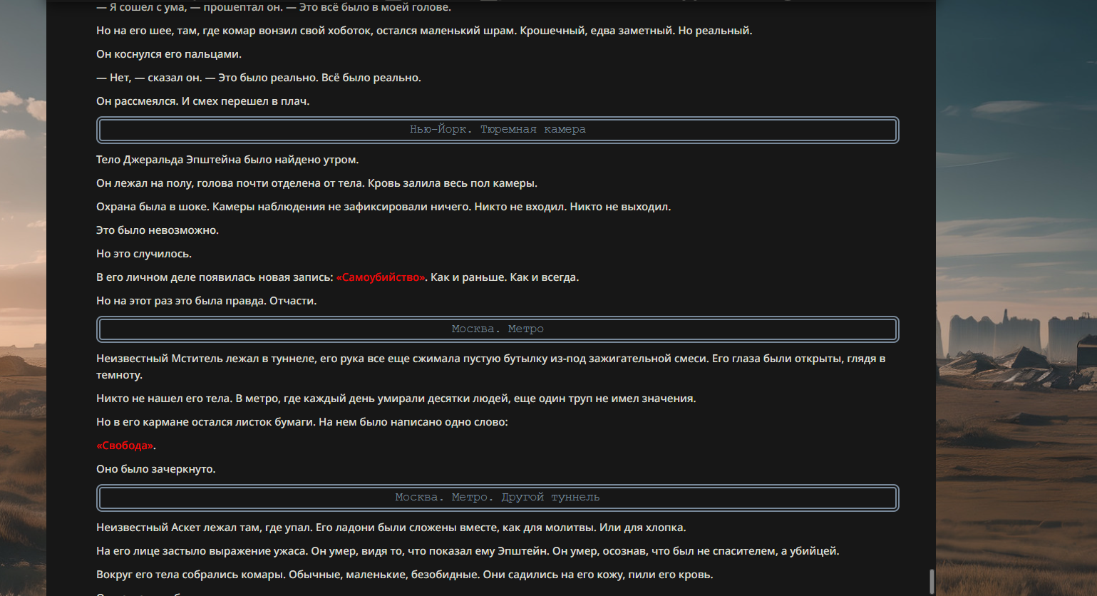 "Представь, что ты мёртв. Ты потерял всё. Теперь тебе нечего бояться."