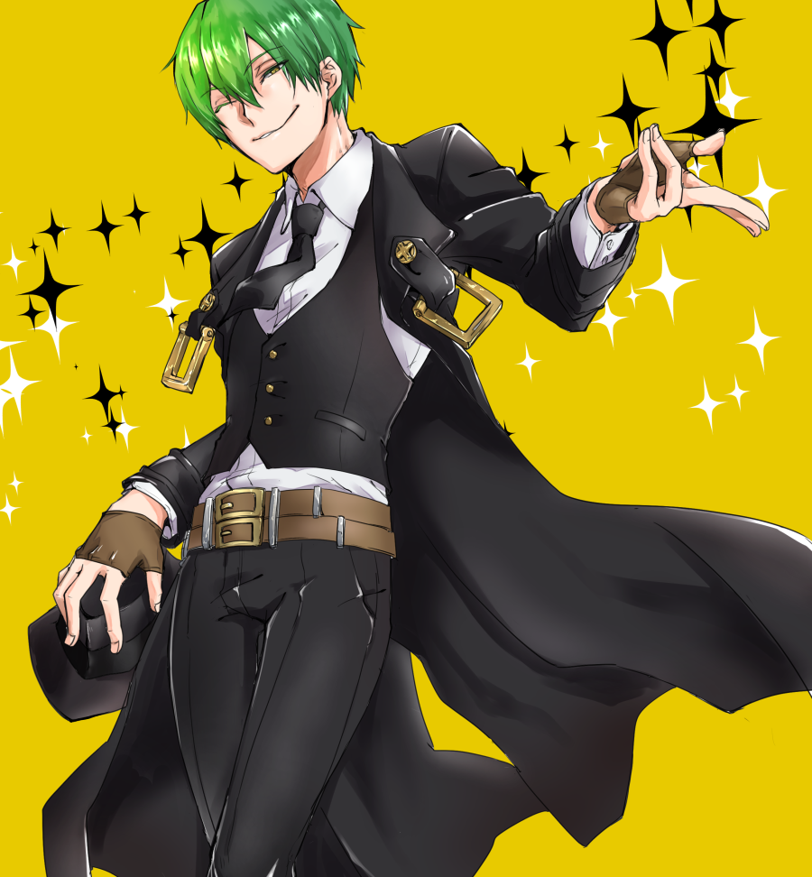 ###5. Клинок эмоций After the jump, Warder's thin blade is replaced by a huge, long, wide-bladed saber made of green flame, like a pirate's, and the handle is lengthened, turning into an umbrella handle made of condensed green magic. With it, his physical capabilities are tripled. While he is in the transformation, each hit with the saber on an something is accompanied by an explosive wave of fire, the recoil of which hits in the opposite direction from the blow. From an excess of concentration of Warder's magic (for example, in a closed room), the air for opponents can become poisonous according to the principle of the "burn of magical nettle" He is also able to lengthen the handle of condensed magic, thus obtaining a naginata. Also, like his alter ego, Delaver, he can put his hand through the ring of the rounded handle of the umbrella, twisting the blade in preparation for an unexpected attack. He can carry out a series of Delaver attacks, frightening the enemy with a strong-willed onslaught. And other creative fighting solutions based on his fighting style and character.