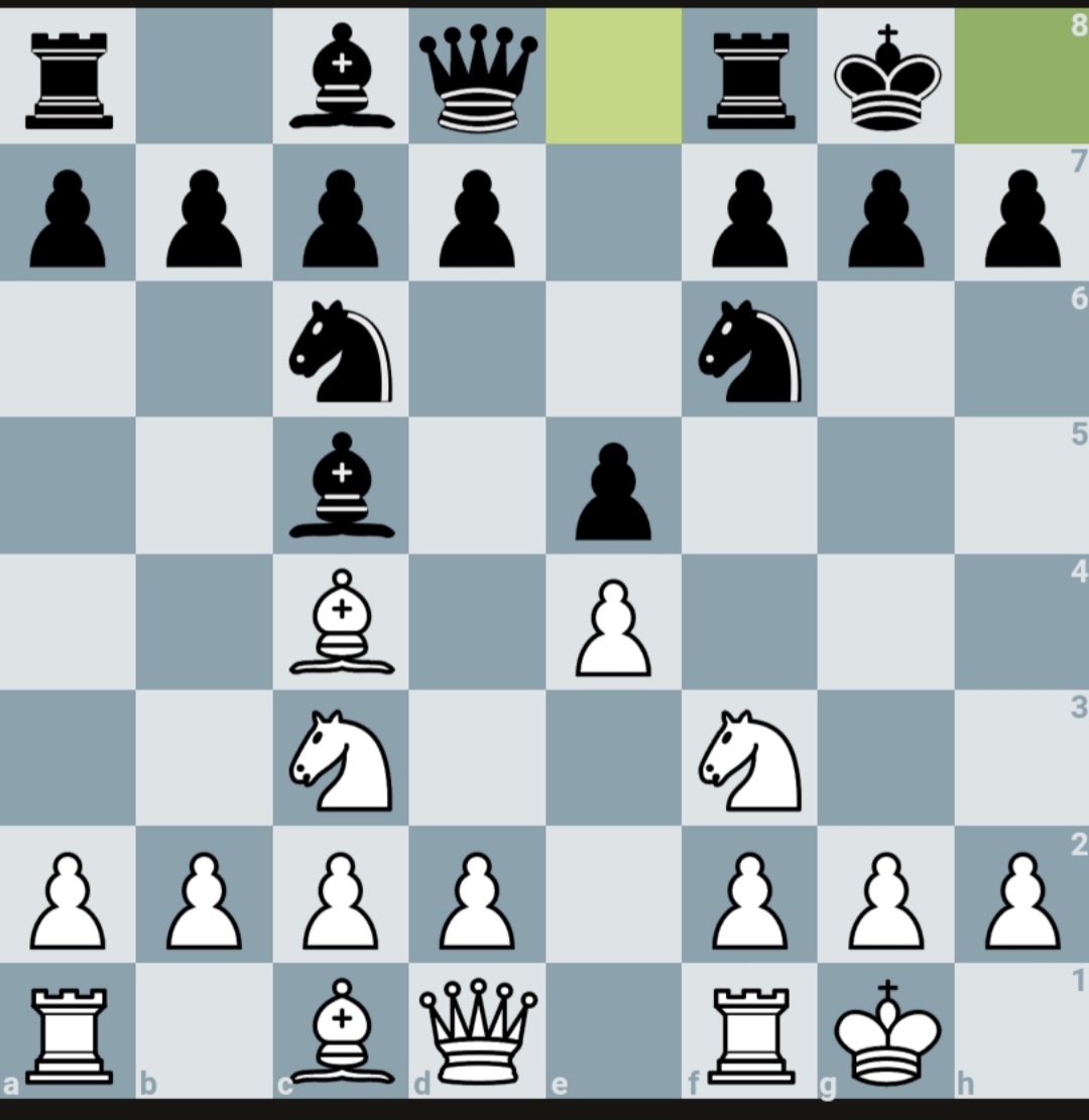 >>1594179 Cчитается, что из дебюта ты вышел, когда ладьи по 1й соединились, т.е. на 1й (для чёрных, соответственно 8-й) горизонтали между ними других фигур нету. На позиции еще чернопольный слон и ферзь не пристроены. Ну можно попробовать не спешить менять фигуры, а дорасставиться например как-то так: Ле1, d3, Сg5, Фd2 и посмотреть что партнёр делать будет. Можно попробовать план c b3, Сb2.