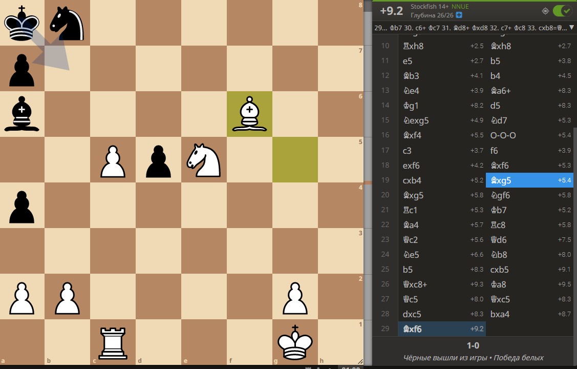 ЖЕРТВУЕШЬ ФИГУРЫ, ПОСЛЕ ЧЕГО ЕБАШИШЬ ПРОСТО АДОВЫЕ ВИЛКИ "ШАХ КОРОЛЮ - ФЕРЗЬ - ЛАДЬЯ" @ ИЗЯЩНЫЙ МАТ НА 20-М ХОДУ @ 6 MISTAKES, 4 BLUNDERS @ ЛАДНО.JPG @ ТУПО ВЫСТРАИВАЕШЬ ЛОНДОНСКУЮ СИСТЕМУ, ДАЖЕ НЕ СМОТРЯ КАКИЕ ТАМ ХОДЫ ДЕЛАЕТ ОППОНЕНТ @ ПЕРЕДВИГВАЕШЬ СЛОНА ТУДА-СЮДА, ПОКА ОН НЕ ОШИБЕТСЯ И НЕ ПОДСТАВИТ ФИГУРУ @ ОШИБАЕТСЯ - БЕРЕШЬ. @ ПОВТОРИТЬ n РАЗ @ НА 58-М ХОДУ ТУПО СЪЕВ ВСЕ ФИГУРЫ, ЗАГОНЯЕШЬ ФЕРЗЕМ В УГОЛ @ 0 MISTAKES, 0 BLUNDERS