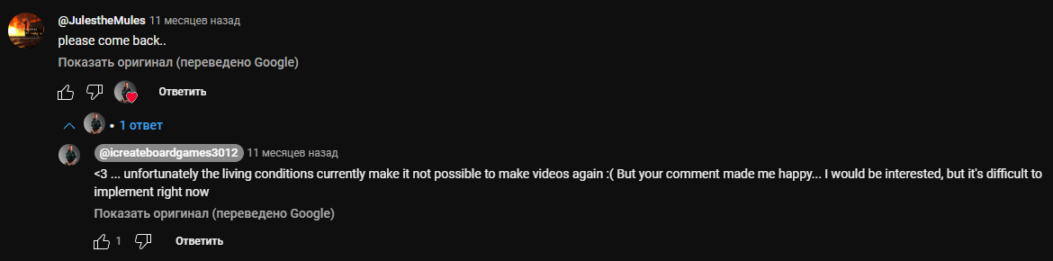 >>1620599 Видимо, просто потребление контента стало настолько нормой, что даже казалось бы активные развлечения люди научили себя потреблять пассивно. Ну хуй знает, я не осуждаю, но не понимаю. >>1620600 >Не у всех идеальное здоровье. Ограничения по здоровью я всецело принимаю как довод про отсутствие сил, но это не само собой разумеющееся для активных развлечений. Можно и в ди пойти с серьёзными ограничениями в движении рук и считать, что ролики Высоцкой тоже готовка. >У меня за пекой сил иногда не хватает сидеть - удивлён? Работа, обстоятельства. Удивлён. Что у тебя есть силы на четыре или два с половиной часа с на ускорении как у анона выше на то, чтобы смотреть чужие игры. Мне сил не хватит на такое. Я мог бы тебе и дискордик с ролл20 предъявить как те же 4 часа после работы, но под обстоятельствами ты можешь иметь ввиду семью и ограниченную жилплощадь. Варианты, если очень хочется, существуют, разве что далеко не для всех ограничений по здоровью. Но в любом случае, твоё хобби не настольные игры, а подкасты.