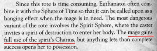 >>1631368 Не, магос становятся один раз. Временную одержимость можно делать через Дух 4, но на это время магия сфер блокируется, замещаясь чарами вселённого духа.
