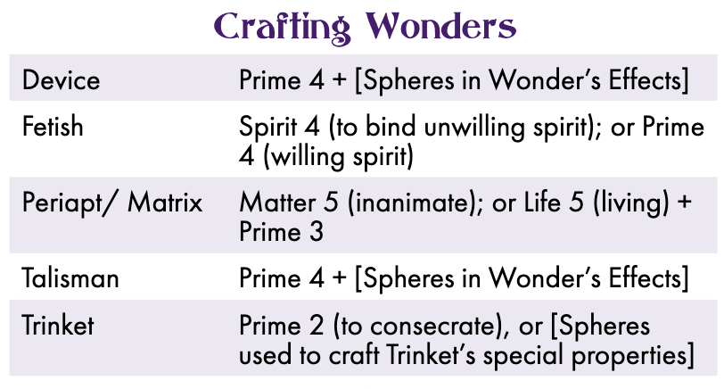 >>1631966 >Как маги делают артефакты? Там просто куча механа. Коротко - нужны Основы, сферы целевого эффекта и прорва квинты. >Видел что у каких-то предметов есть свое Арете а у каких-то нет. От чего это зависит? От его типа. У периаптов и матриц его нет, потому что это просто хранилища, например. Тринкет имеет простой статичный эффект, не требующий активации. >И от чего зависит количество Арете у предмета? База - это минимально-возможное Арете по рулам (т.е. равное рейтингу самой большой сферы эффекта), но если (это опциональное правило) потратить больше ресурсов на создание, то можно его увеличить. >А маги так могут? Сделать артефакт-лампочку? Ну да, могут. Почему нет?