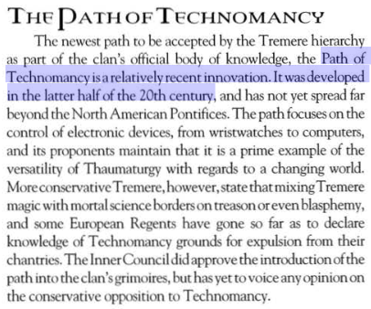>>1632205 Нет, мало общего. На фундаментальном уровне, "магия нефанди" это все еще пробужденная магия, а темная таума - все еще хедж маджик, только работающая на вите. Из сходств только то, что и то и другое даровано темными силами. А вот инфернальные мериты нефандус и тауматург могут получать одинаковые, от тех же сил.