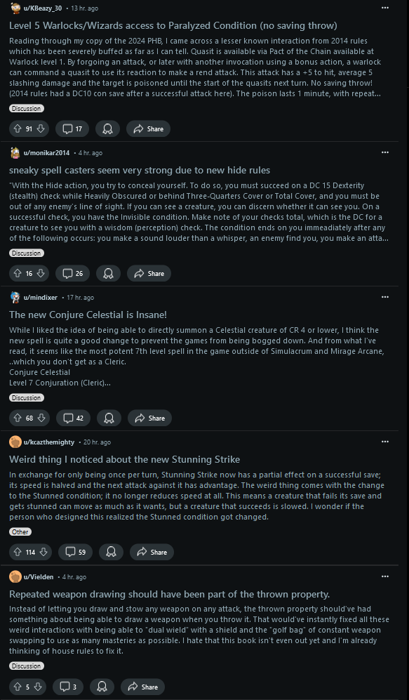 Пока что все выглядит крайне поломанным. Билды с параличом без спаса, скрытые = невидимые кастеры, оглушение которое не останавливает движение, и так далее. К этому должна выходить эррата на 10 страниц в день релиза книги.