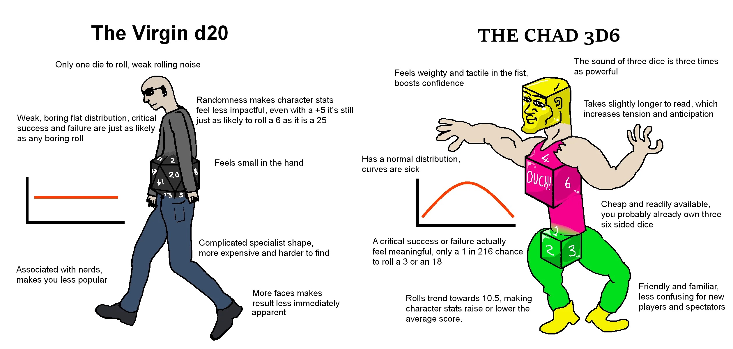 >>1641524 ПиД это система, пока есть 6 характеристик, скилчеки на д20, а маг может кинуть фаербол на 8д6, то это ПиД. Нахуй пошёл. > Переделать таблицу энкаунтеров > Не ПиД Объебаный что ли? В ДМГ этих таблиц хуй да нихуя, по штуке на ситуацию, считай нету. Реально нахуй съеби, долбоёб.