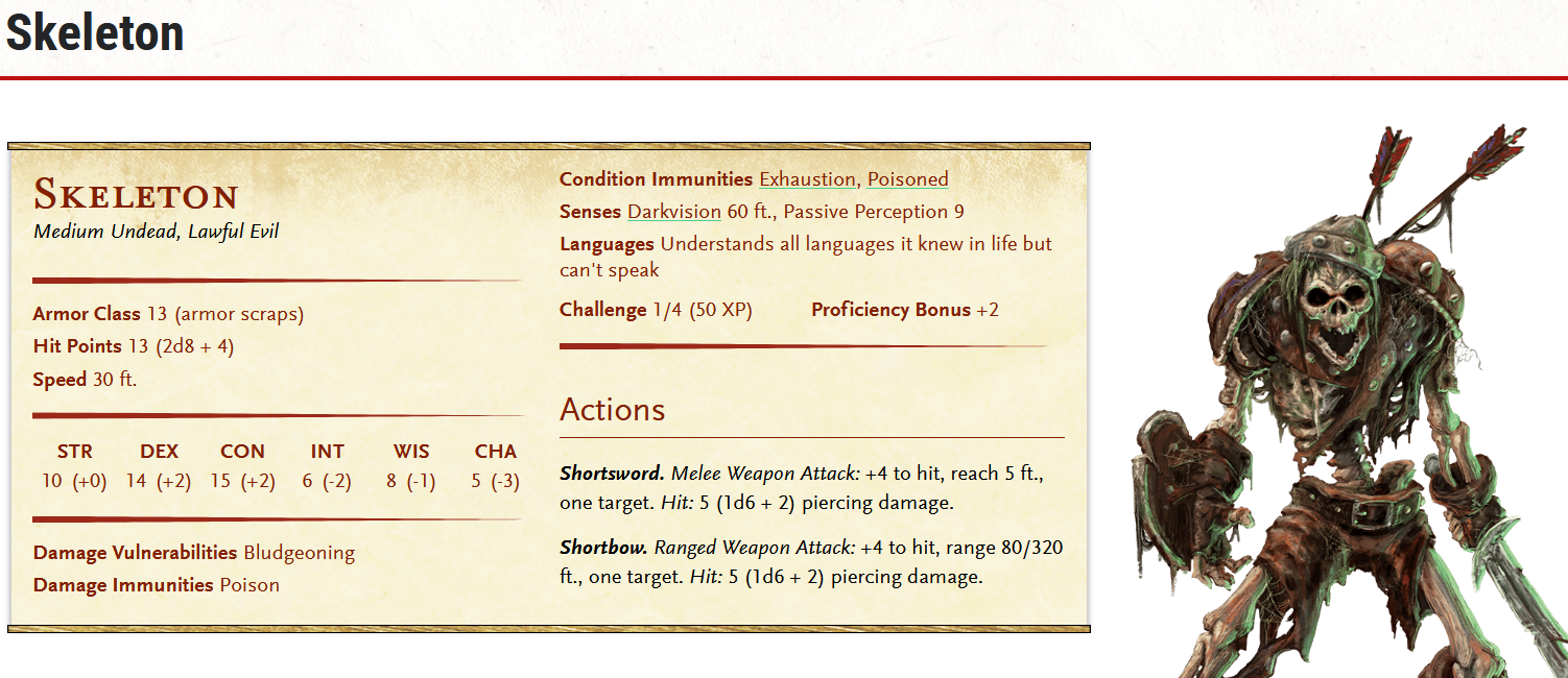 Вот смотри, анон. Как известно, в дехе, скелет - это не конкретный монстр, а шаблон. Чей скелет-то? Скелет кобольда, эльфа, гнома там, ещё кого.