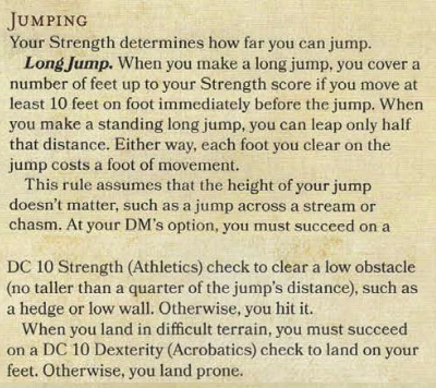 >>1647147 Ну в заклинании написано что когда существо заходит в шипы, то получает дамаг. В прыжке ты выходишь из зоны и заходишь в нее снова за каждый прыжок, то есть дамаг будет проходить, но уже не за каждые 5 футов, а за каждый прыжок. При этом движение все равно будет сокращено вдвое потому что о каждый прыжок начинается в сложной местности. Короче да, профит от прыжков по шипами есть, но еще нюанс. Есть такое правило: Если вы приземляетесь в труднопроходимую местность, вы должны успешно пройти проверку Ловкости (Акробатика) Сл 10, чтобы приземлиться на ноги. В противном случае вы падаете ничком. Думайте