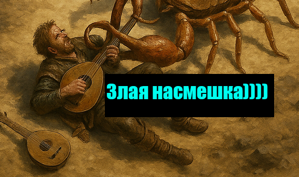>>1641873 У меня как-то была идея ебанутого злодея, который угрозами заставляет персонажей пойти в данж за нужной ему побрякушкой, но в конце вместо этой побрякушки записка, в которой говорится что злодей просто пошутил и ничего тут нет, а еще что-то типа "пост скриптум: примерно через 10 секунд из стен начнут вылезать ядовитые пауки, советую вам поспешить к выходу". Типа такого.