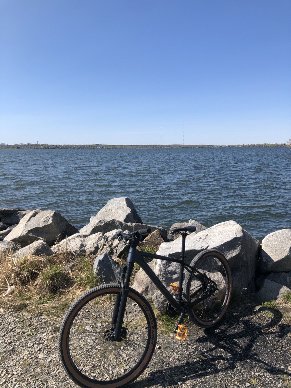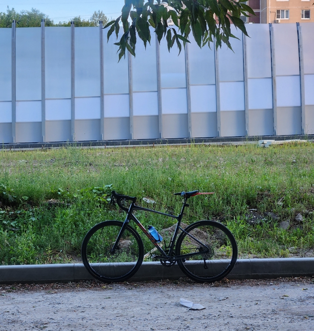 Giant revolt 2, в целом сток, кроме обмотки руля. Приятный для вкрута по асфальту и всяким парково - дачным грунтовым делам, после подвеса амортизация как у куска забора, но я уже привык, нет потери инерции, кайф. Донастроил наконец Сору - ахуенно щёлкает, на 105 менять не хочу, разве что тормоза не гидравлика - не хватает их бывает, но я у мамы быстрый, нахуя мне тормоза.
