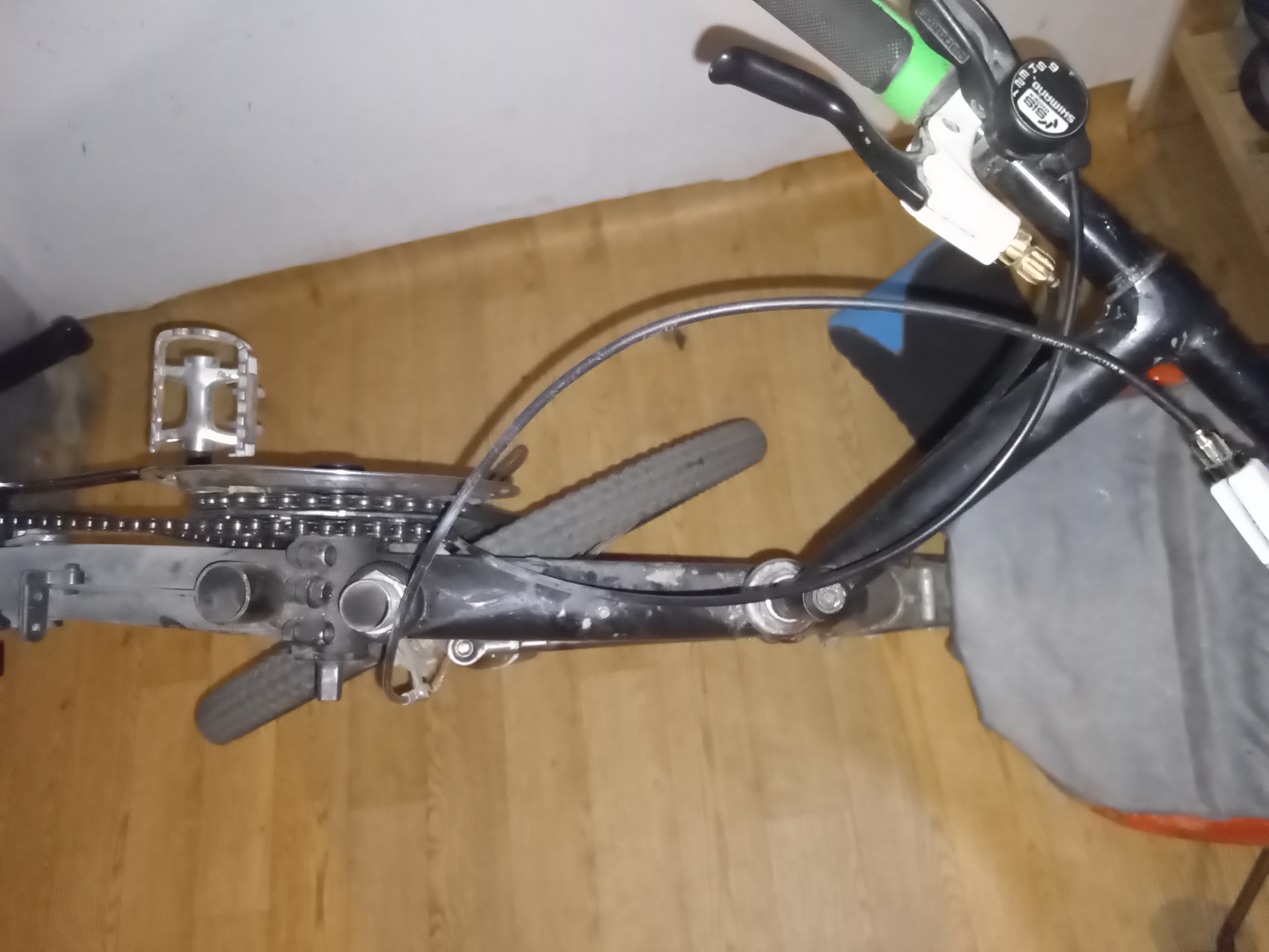Первый лигерад до всех переделок. Передний переключатель на промежуточной звезде показал себя как бесполезный кусок кала, тут при езде на 1 скорости и повороте вправо цепь даже с сингловой звёзды на 36 вроде зубов умудряется слетать, а со скоростной слетела постоянно. Ну и неоткидываемая палка руля и бортики на кресле это топ, видимо чел который делал кресло был очень тощим