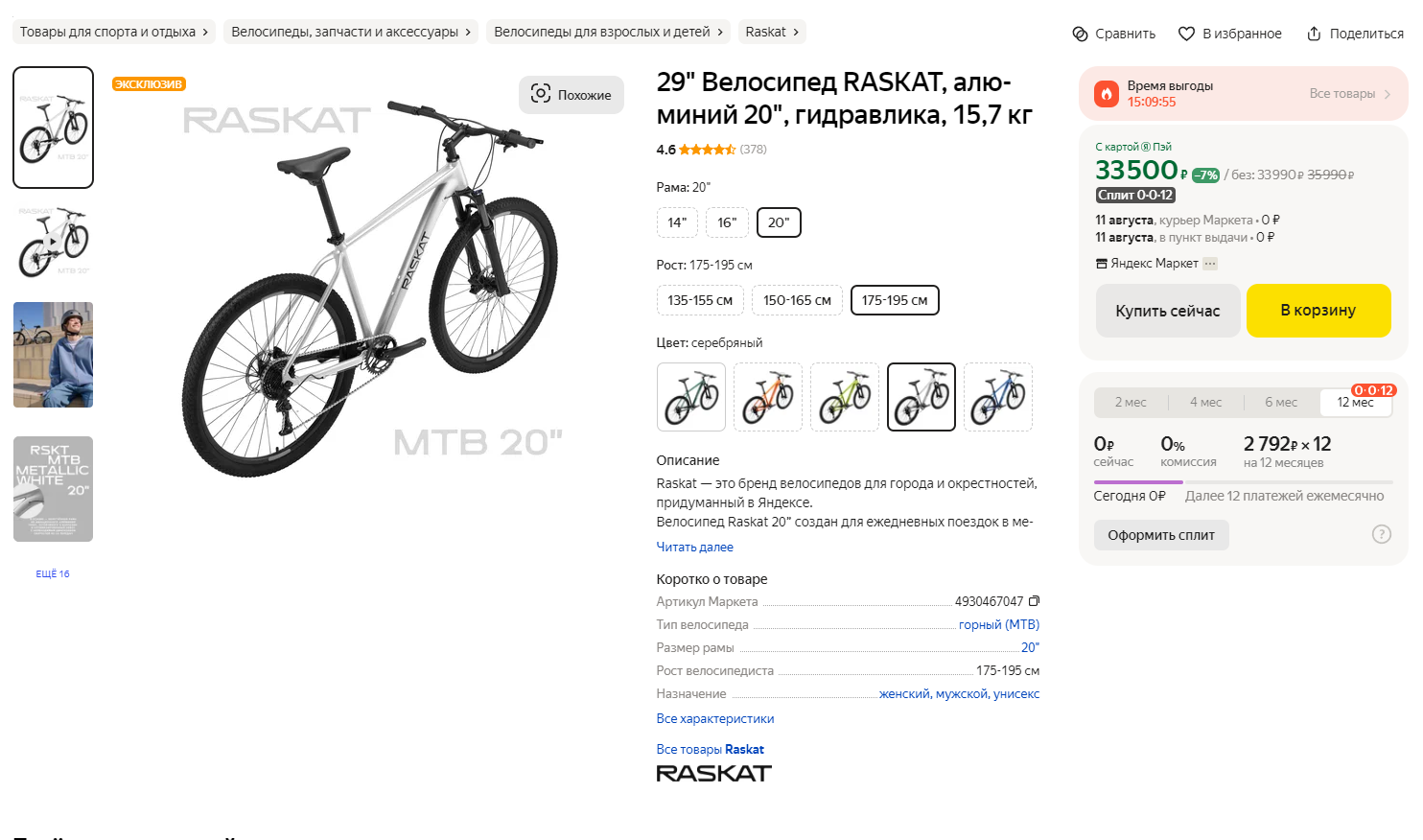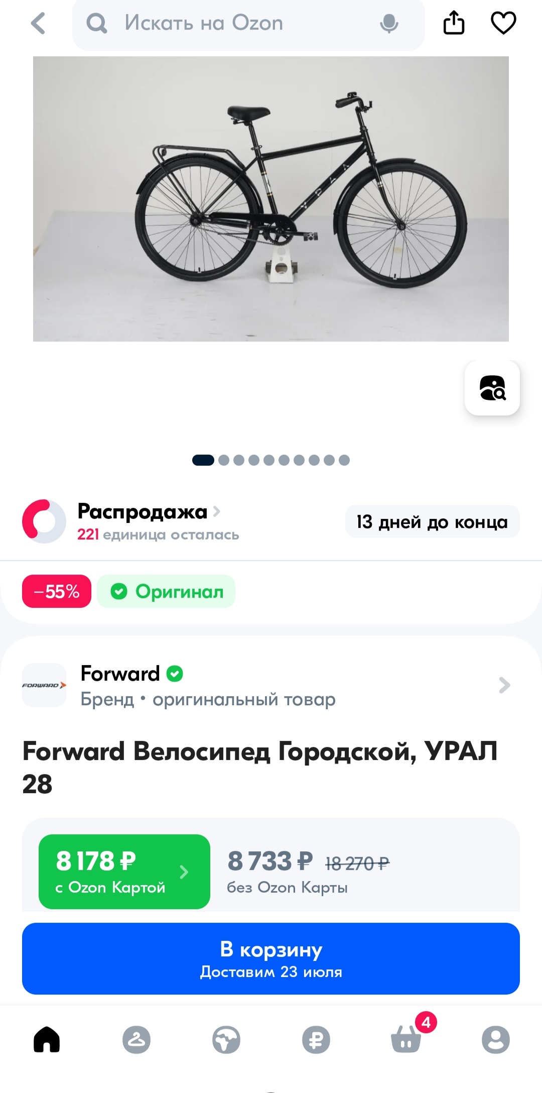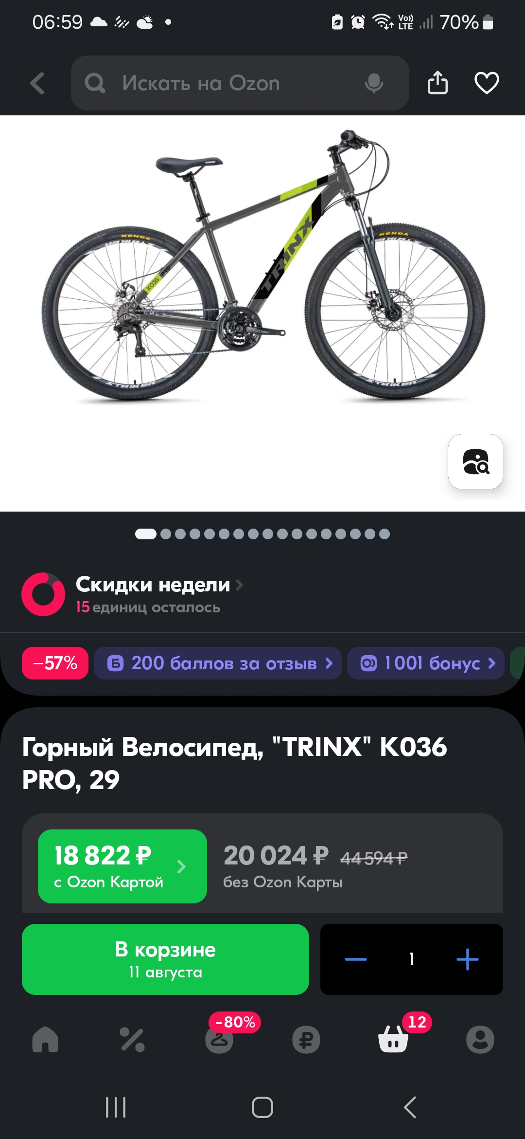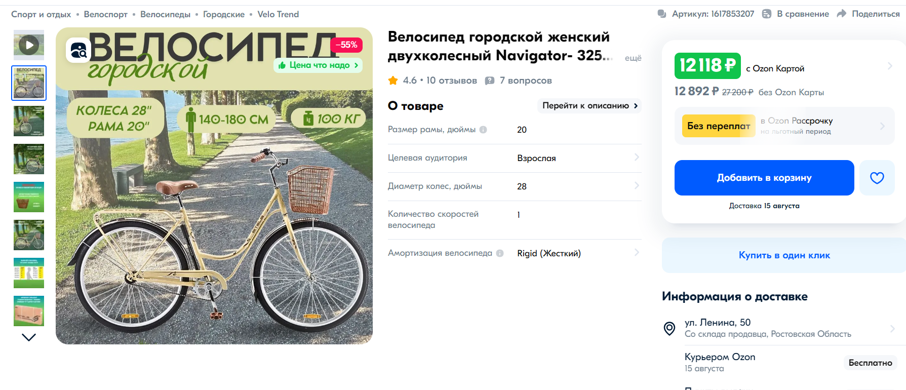 https://ozon.ru/t/YolK0AM Неплохой вариант для тех кто ищет себе бюджетный велосипед кассета, дисковые механические тормоза, каретка на промах, втулки на насыпных подшипниках, вилка ригидная 18 рама на рост до 180 см. Всяко лучше чем то, что предлагает Desport (бывший Декатлон) и другие за эту цену. У меня цена 12905 по озон карте стоит московская обл.