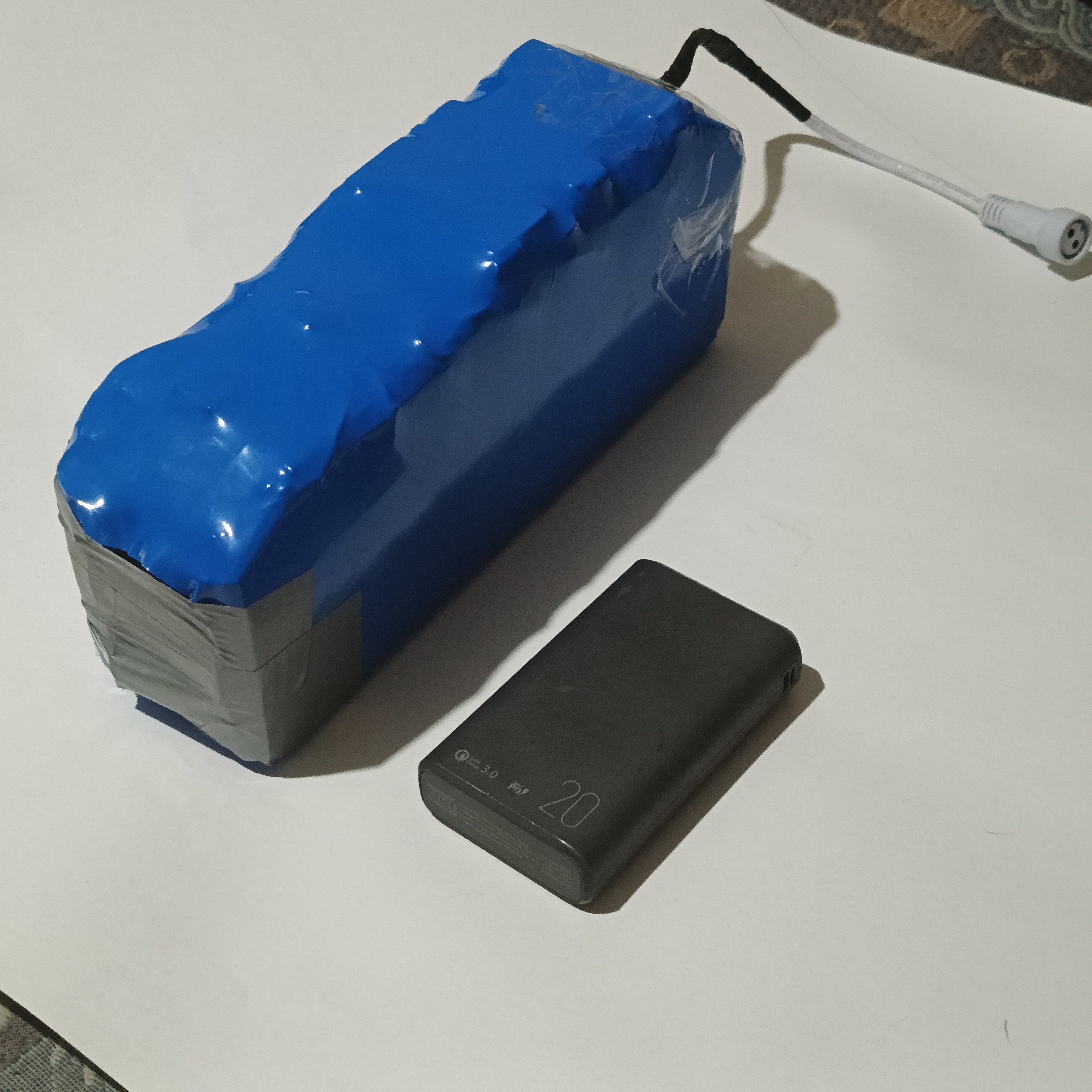 >А для совсем нубов? У меня вот павербанк на 20 часов, это сколько таких надо? На павербанках конечно чего только не пишут. У меня валяется павербанк на 20, ну сфотаю рядом! Полагаю ~12 таких павербанков? Можешь по весу прикинуть, батарея весит ~2.4 кг.