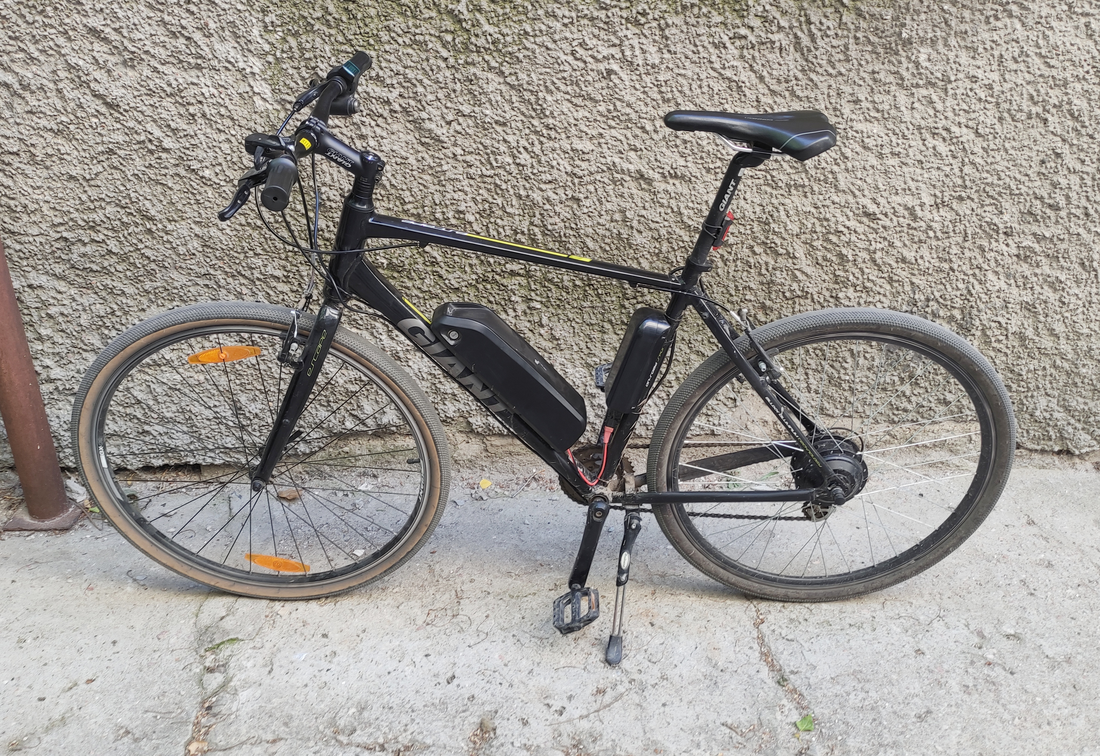 На перед ставишь редукторное колесо 250ват mxus, обязательно с усилителем дропаутов, покупаешь сумку на руль в которую влезет батарея из 12штук аккумуляторов lifepo4 формата 32700 и контроллер 350ватт который самый дешёвый на Али + ручка газа с кнопкой включения. В тыщ 20 уложишься с работой знающего в этом деле человека.