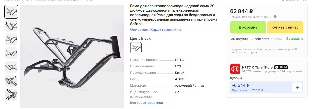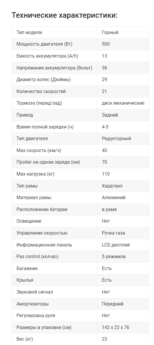 >>1527129 В подвале. Или в гараже. >>1527109 Почему целые велы хотите покупать на Али? Максимум там можно раму купить, или колесо в сборе. Странный круизер на 24ых колёсах, круизер должен быть на 26. Бери Шульц БДК, ставь резину пошире, 27.5 х 2.6, вилку только поменять на вилку с аммортизатором и чтоб не под ось, а под qr 10 mm x 100 mm, ну и туда мотор передний. (Почему передний, потому что ты 100кг весишь и основной вес будет на заднее колесо) Но хуй знает, для такого веса как у тебя возможно 350вт мотора будет маловато, надо уже 500вт 48 Вольт брать, и батарею тоже от 48 вольт. Вот тут список выше компонентов. Хотя может и норм будет 350 вт мотор, просто больше будешь скорость набирать. Мотор который я покупал, и всем тут советую как оптимальный вариант, bafang fm g020 250/350d весит 3.3 кг, мотор на 350 Вт, и официально можно использовать и с 36 вольт и с 48 вольт батареей. Вкачать в него можно все 500 вт, а в пике кратковременно и 1000. Положенные по ПДД 25кмч у тебя точно будут в любом случае. Я разгонялся до 40, но дальше стремновато, усилитель дропаутов ещё не поставил.