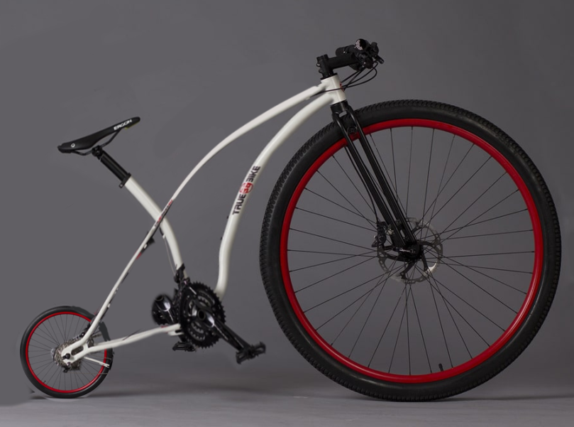 Уже несколько лет прощупывают варианты вывести на рынок колёса диаметром 36 дюймов. Они лучше гасят вибрацию, имеют лучший накат и красиво выглядят. Но не подходят для велосипедистов более низкого роста. Предлагаю инновационное решение: переднее колесо мы оставляем диаметром 36 дюймов, а заднее уменьшаем, чтобы было одновременно и комфортно держать руль, смягченный большим колесом, и удобно залезать на велосипед. Примерно так. Уверен, такого публика ещё не видела, будет иметь успех! В качестве дальнейшего развития идеи можно упростить конструкцию (фиксы сейчас популярны, им зайдёт) и убрать трансмиссию, сдвинув седло вперёд и переместив педали на ось переднего колеса.