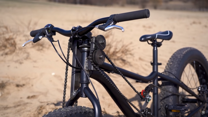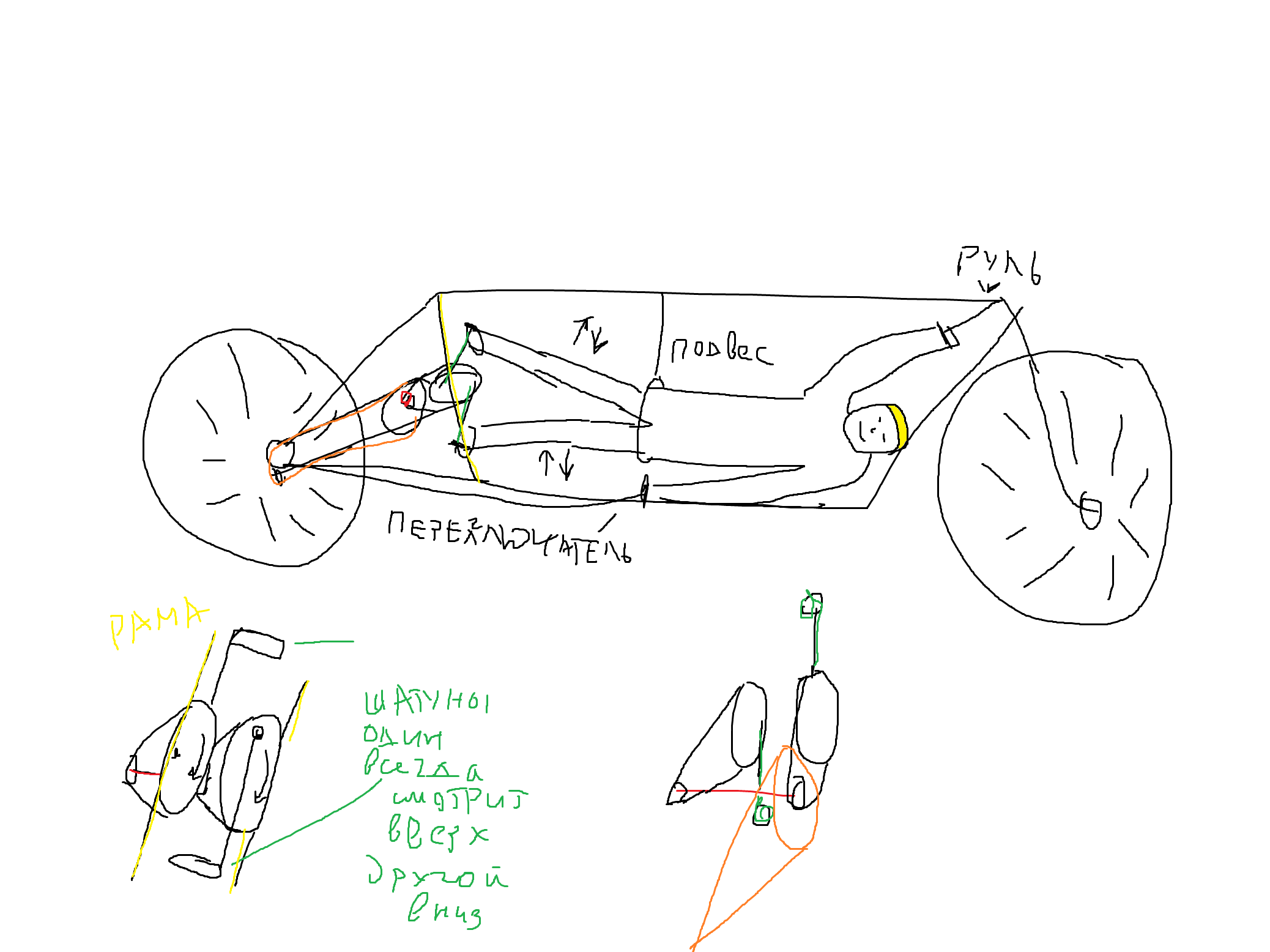 >>1417157 Осями или цепями пробрасывается на переднюю вилку крутяшка, но... я думаю, объяснять что-то не нужно. Мне кажется, что эффективнее просто мотор повесить.