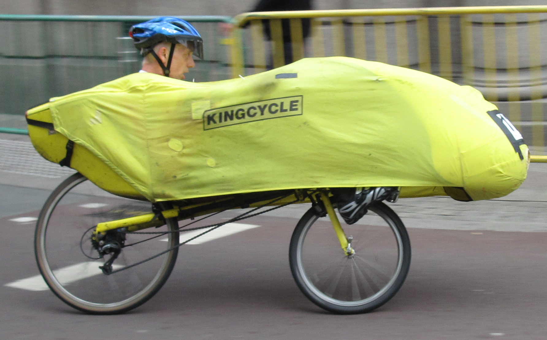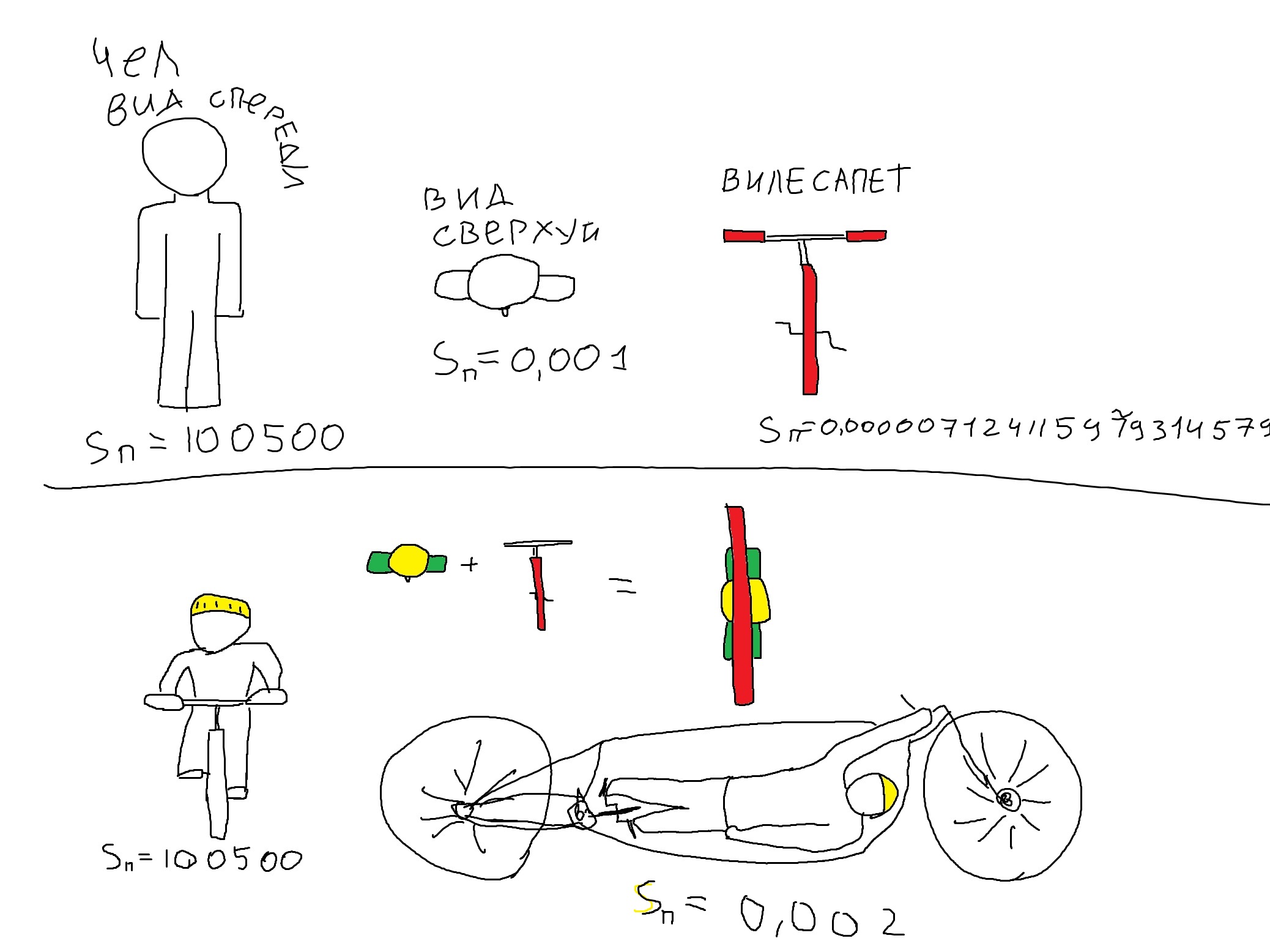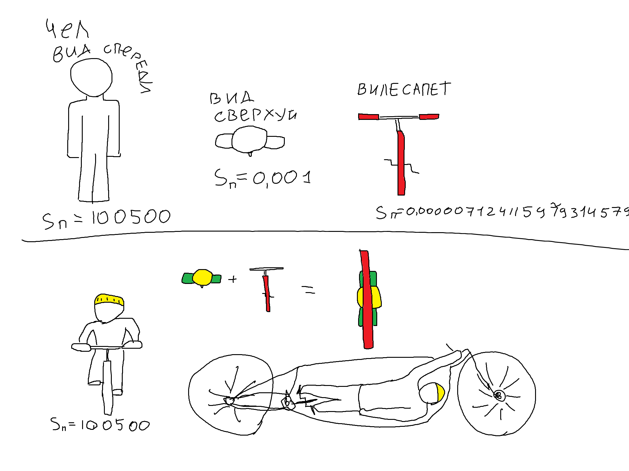 >>1392940 (OP) Я долго думал и понял одну простую вещь: МЫ ОЧЕНЬ МНОГО ЭНЕРГИИ ТРАТИМ НА СОПРОТИВЛЕНИЕ ВОЗДУХА А все почему? Человек висит поперек набигающему потоку воздуха почти всей своею площадью, как парашютист замедляющий падение, хуже для аэродинамики ехать просто НЕВОЗМОЖНО, разве что если ты не расстегнешь кожу со спины и не растянешь ее меж ног и рук как белка-летяга. Зато знаете где профиль человека минимален? При виде сверху! Поэтому я предлагаю положить человека вдоль велосипеда. А чтоб еще лучше для эродинамики было - спрятать за колесами повдоль чтоб его профиль почти целиком скрывался велосипедным колесом. Сделать зеркальца чтоб было видно куда прешь, или в современном мире можно камерами обойтися. Подруливать несложно, велосипеды сами рулят, а на таких скоростях тебе и рулить особо не нужно.
