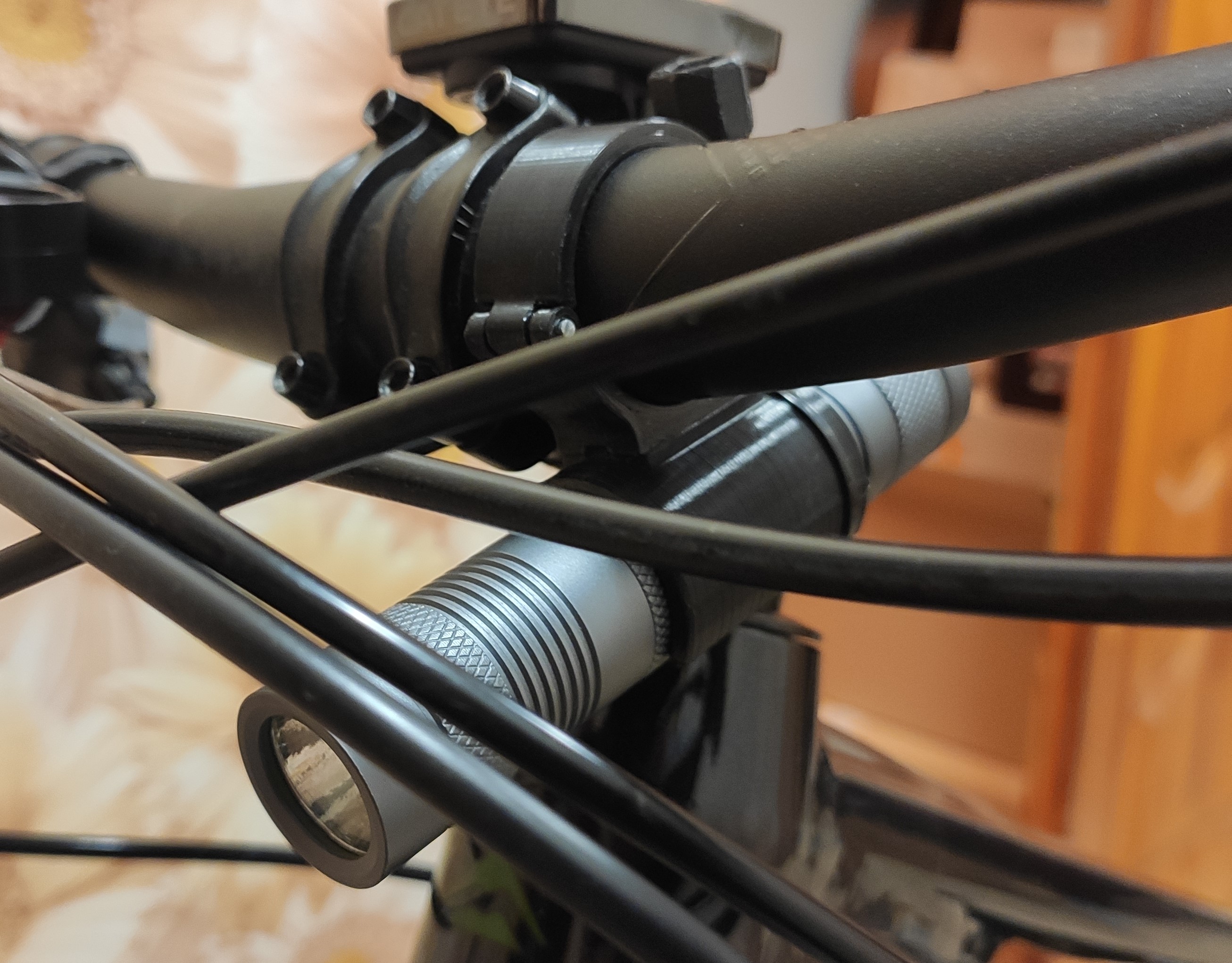 Такого формата есть несколько моделей, я рекомендую с 3 светодиодами и аккумом 21700 4А-ч. Средний светодиод как бы "дальний свет", два боковых "ближний". Есть ещё с аккумом 18650 2А-ч, но это кал, его на полчаса хватает. И несколько моделей с 5 диодами, по-моему на велосипеде такая монструозная ёбань не нужна.
