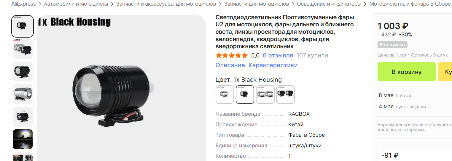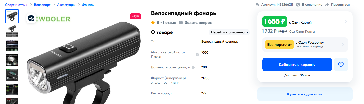 https://ozon.ru/t/8GYRGLl Брат жив, зависимость есть. Для езды в лесу/по парку/вокруг дач сойдёт. Особенно учитывая, что 25% стоимости срезалось бонусами, я велик брал у них и дали кучку. Для выездов на ДОПы буду брать прямоугольную хуету за косарь, там светотеневая приближена хотя бы к автомобильной немного, не бьёт в глаза встречным. Есть ещё куча всякой залупы в FixPrice, где она дешёвле, чем на Озоне, но это только как экстренный случай на кармане лучше иметь, а не основной свет