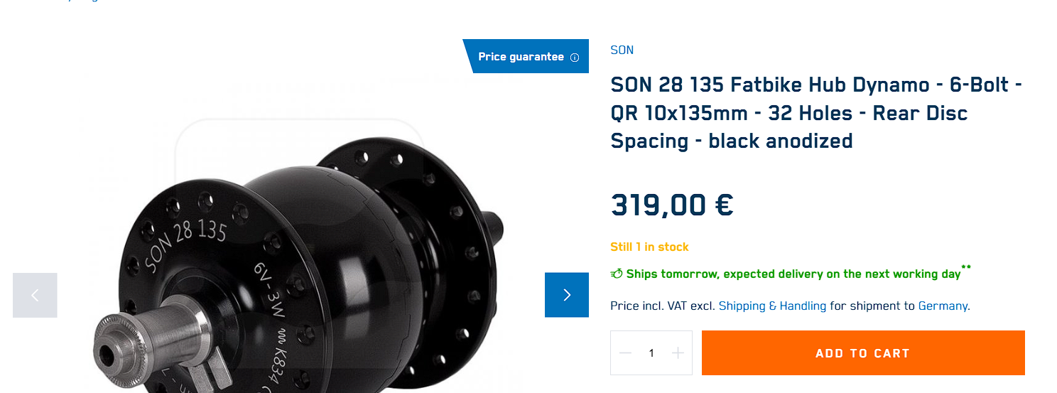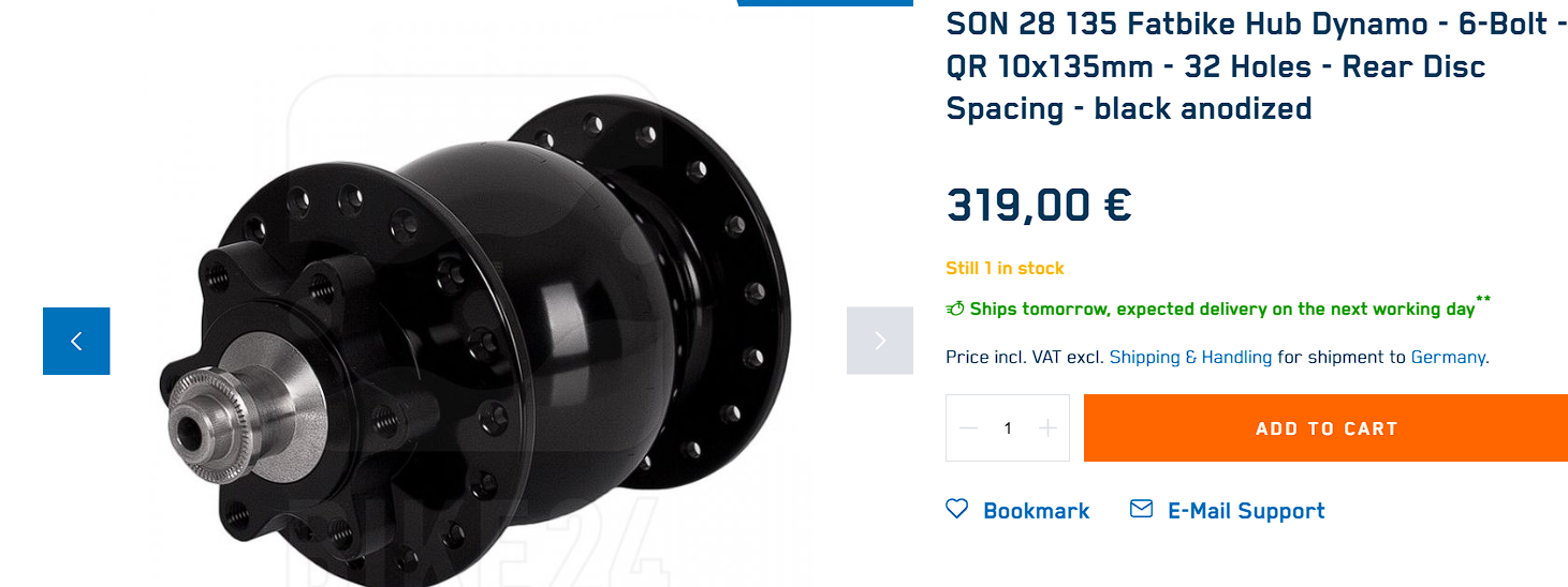 Динамо-втулка Shutter Precision PV-8 вес 390 г.