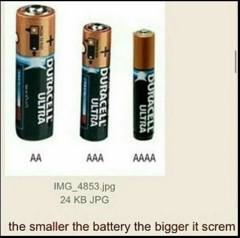 >>1508383 18650 надо ещё выбрать годные и заказать, а трипл-А есть в любом фикс-прайсе и прочих залупах хозяйственно-бытовых которые по пути встречаются. Даже в газетных ларьках которые ещё где то да остались есть эти батарейки. Но всё меняется если у тебя 18650 и тебе было очень впадлу их выбирать и заказывать прозапас....