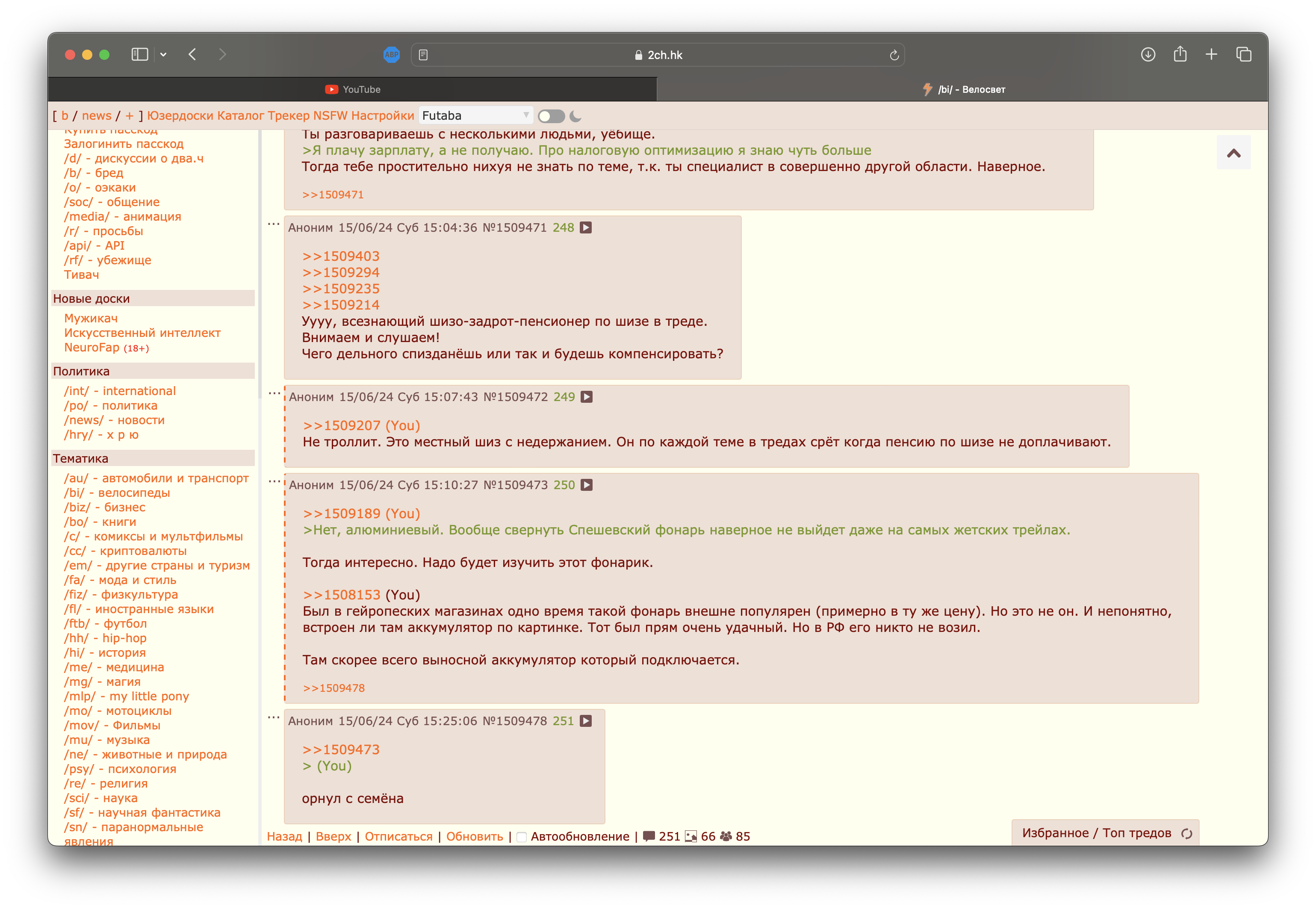 >>1516194 Катать по тротуару можно по разному. Можно ездить аккуратно, никого не пугая, не тормозя резко/юзом, не пролетая мимо пешеходов, чисто со скоростью чуть быстрее потока/равную ему если людей много, при этом всем уступая дорогу. А можно ездить как гнидомразь, пролетая мимо, тормозя со свистом, кладя хуй на наличие людей на пути и вот это вот всё. Во втором случае твой комментарий был бы верным. А вот касаемо соблюдение/не соблюдение пдд, то правила НЕ ОБЯЗЫВАЮТ велосипедиста ездить по ПРОЕЗЖЕЙ ЧАСТИ подвергая свою жизнь смертельной опасности так как мы не в 19м веке живём где автомобиль мог ездить с безопасной скоростью до 40 км/ч МАКСИМУМ а не блджад 100-120 км/ч по городу, ПО ГОРОДУ 100-120 Карл! Если в 19м веке на автомобиль деньги были только у всякой аристократии и машин было тупо мало + слабые моторы не позволявшие разгонять очередной автобляди свою повозку свыше 40 км/ч, то на сегодня картина полностью иная - куча крестьянских потомков с абсолютным похуизмом разгоняют свои вёдра до 100-120 км/ч в городе и на похуях натурально убивают и себя и других. А следовательно твоя шиза про ПДД хуета, но если ты мечтаешь стать хрустом под колёсами подобных "пилотов" - флаг тебе в чайку анон. Возможно конкретно в твоём случае стоит ездить именно по проезжей части.