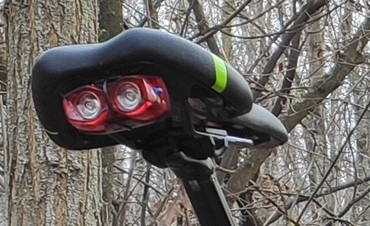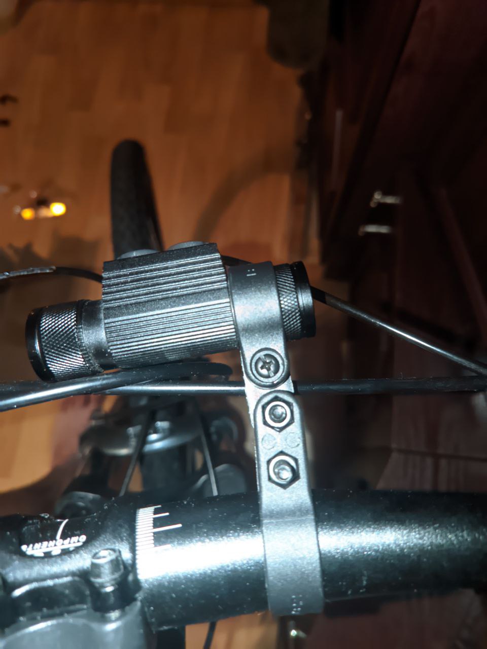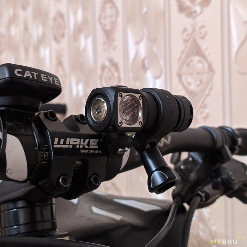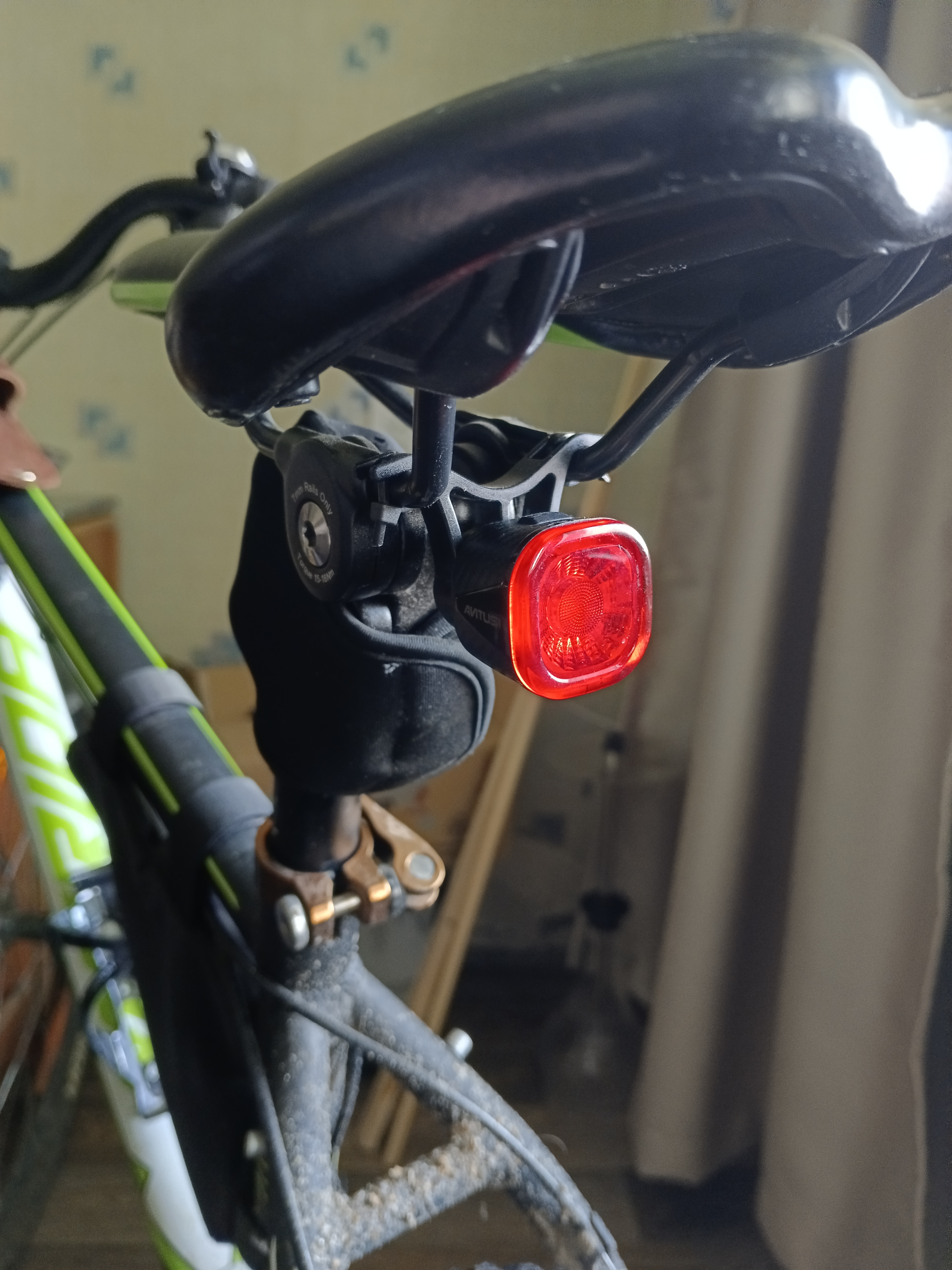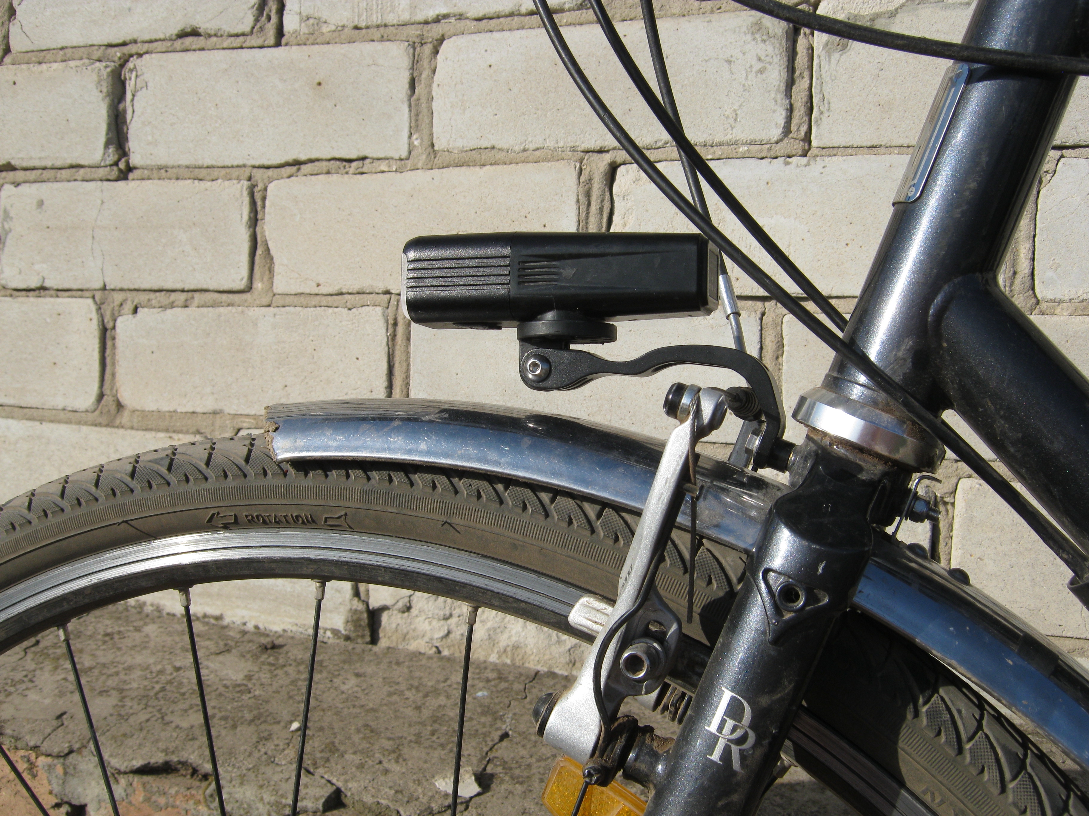 Езжу с обычным квадратным фонариком, который цепляю за руль липучкой. Его баланс + упор в виде линий тросиков у руля наклоняют фонарь чуть вперед. Он т.о. образом широко светит вокруг велосипеда на пять метров вперед. Хз что там по поводу ослепления да и похуй, меня и за рулем авто автофары слепят. На грунтах освещения вполне достаточно. На асфальте как бы и похуй, там все равно дорожное освещение. Главное для обозначения себя хватает. Конечно, нет всяких режимов моргающих. Точнее есть, но красным светом (можно одновременно включить белый стабильный и красный моргающий или не моргающий). В любом случае ебал я ездить с постоянно моргающим передним светом. По-моему это будет меня самого раздражать. Позади катафот и самый простой габаритный велонофарик.