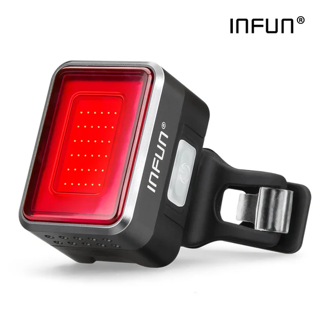 Катаю уже который год с Infun F50 с физически отключенным датчиком движения, ибо работал он примерно никак. Там внутри к акселерометру 3 дорожки едут, перерезать можно любой. И вот после этого он стал идеальным фонарём. Батарея 600мАч, простые режимы без всяких стоп-сигналов, дохуя заметный за счёт площади и люменов. Заряда хватает минимум на 15 часов — это максимальная яркость в непрерыве. Мигалка — 50 часов. Я катаю в режиме дыхания: по спекам 26 часов. Забываю, когда заряжал, поэтому просто заряжаю его вместе с передним фениксом, у которого есть точки заряда батареи.