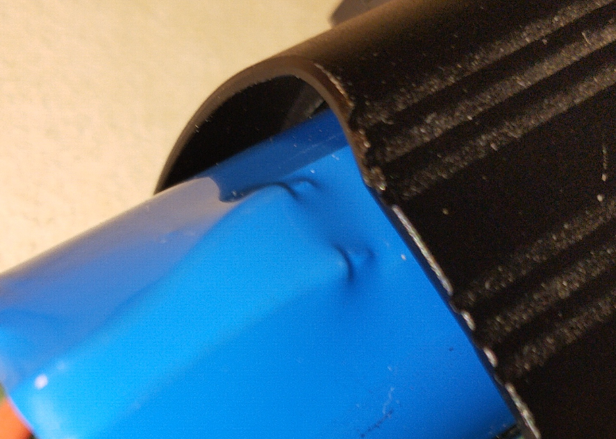 Помните, я раньше предлагал в качестве передней фары использовать Towild BR800? Не покупайте! Лопнула стенка внутри, к которой крепится плата со всеми контактами. В результате давления от аккумулятора остается только один положительный контакт. Отрицательный контакт отодвигается.