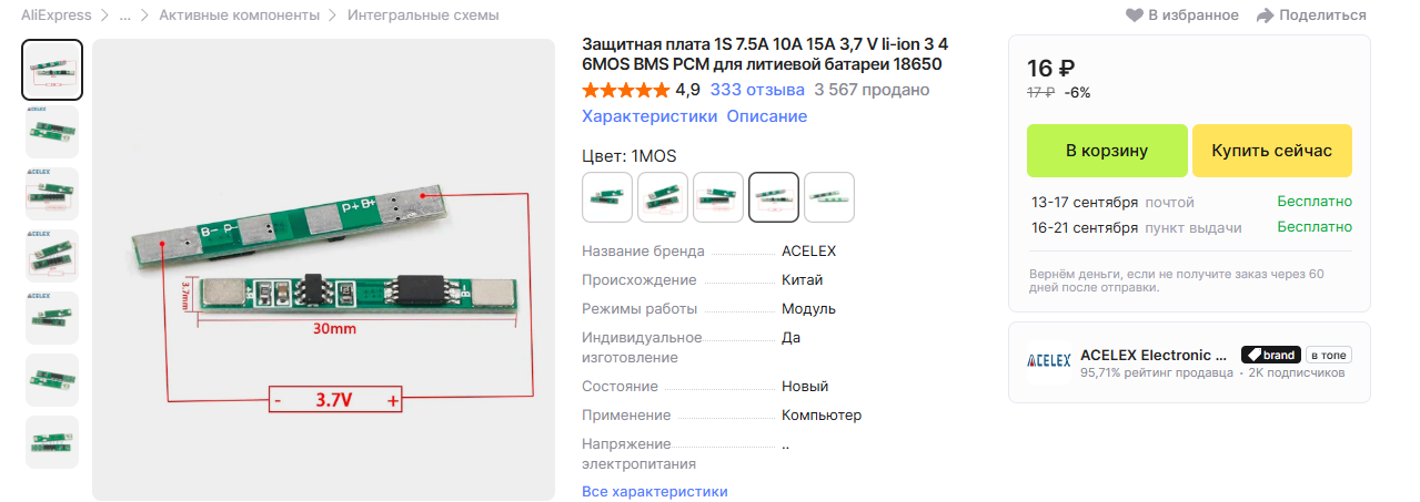 >>1540142 >Вообще хотелось бы знать какие лучше брать. Под такие нагрузки — любой. >Вот его данные, можно дозарядить? Странно. Саморазрядом в полный ноль оно так просто не уйдёт. Может что-то на плате сдохло и новый может так же сдохнуть. Заряжать с нуля такой не стоит. Он может начать греться и в итоге сработает мембрана, он зашипит и нассыт под себя. Никакого аккума в запасах нет для проверки? Тут 21700, но подойдёт любой. Может 18650 найдётся.
