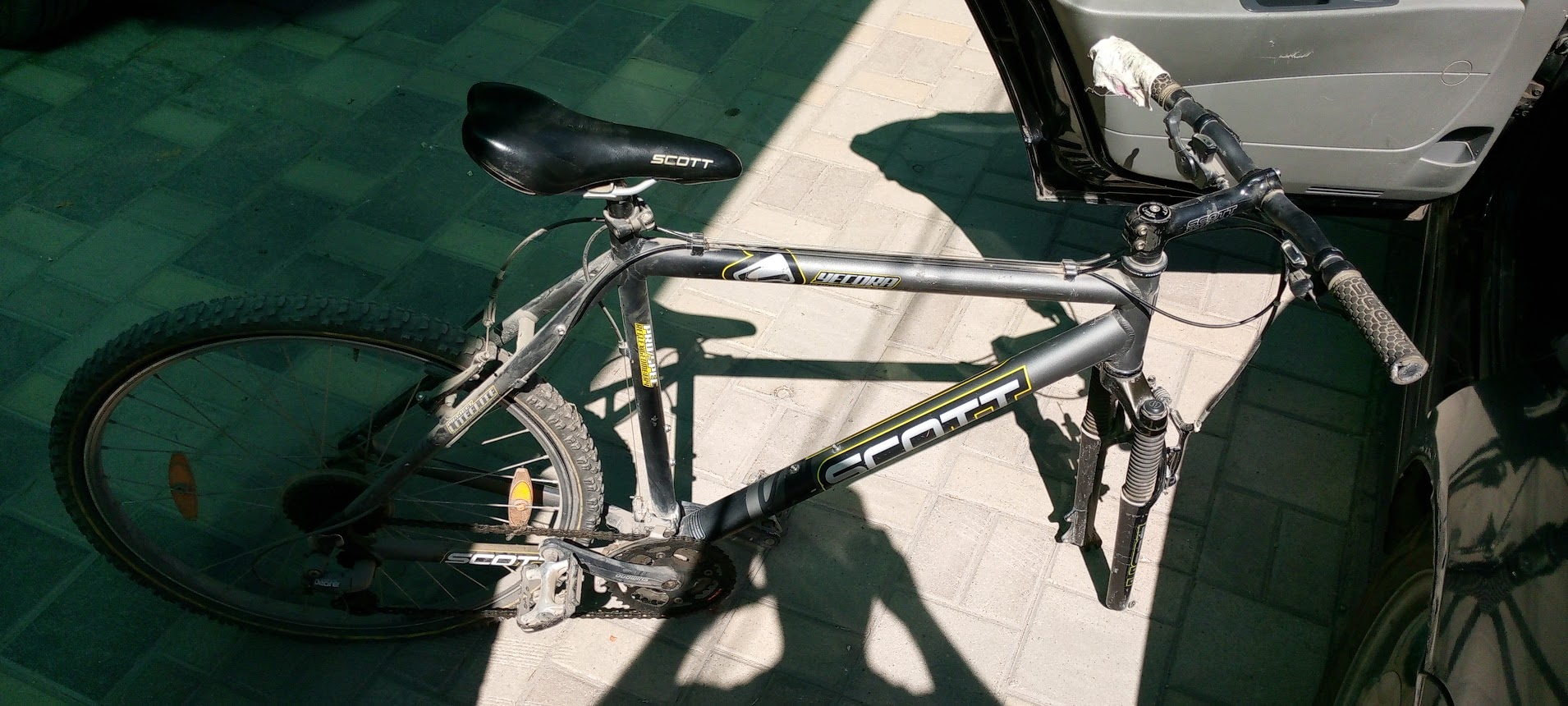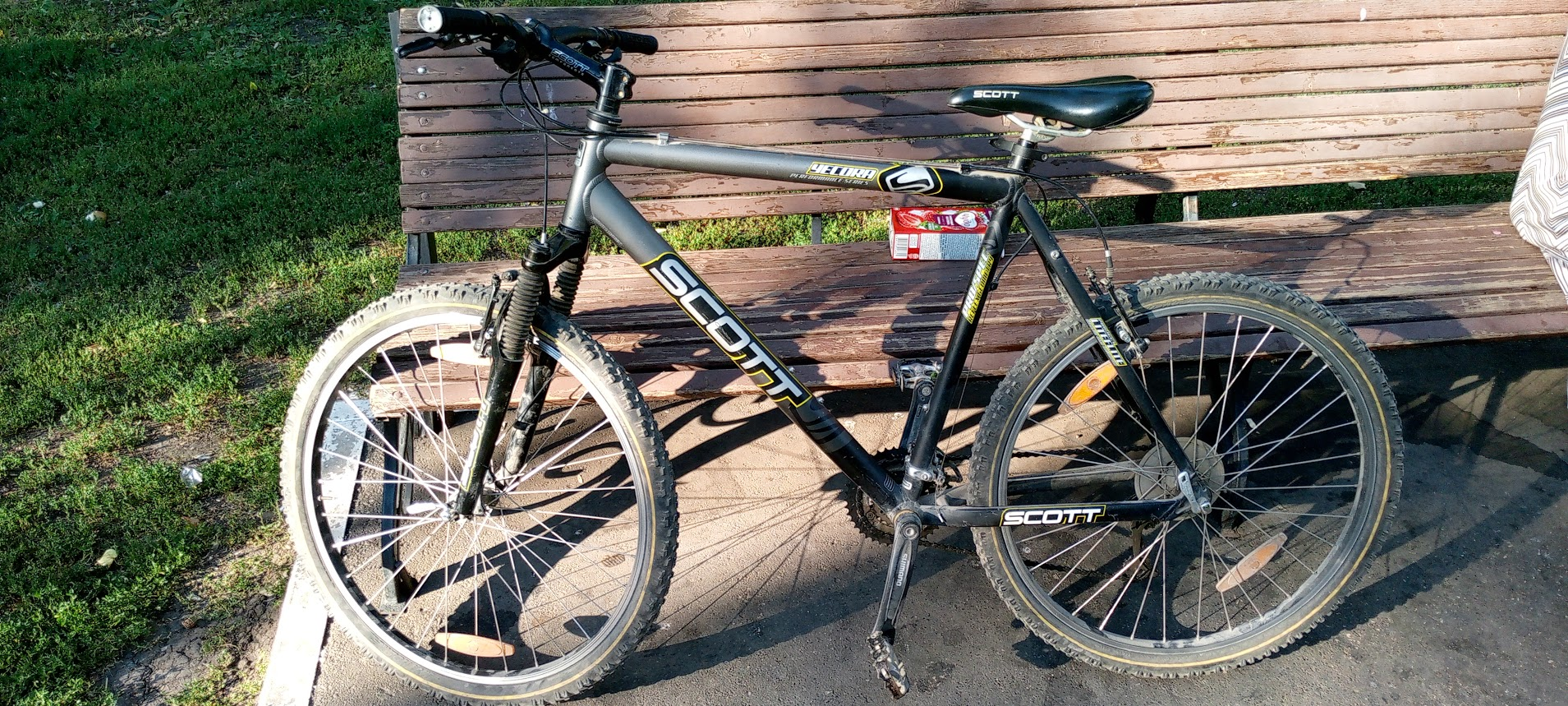 Wheeler 8000 почти даром 180еур Ржавчины нету, каретку проверить возможности нету. Хозяин обещал заглянуть в подседел. В целом очень хорошее состояние. После апгрейда практически не катались, есть скол краски на нижнем пере - металл как новый. Переклюк какой-то старый ХТ. Обода двойные. Говорит хорошо и быстро едет