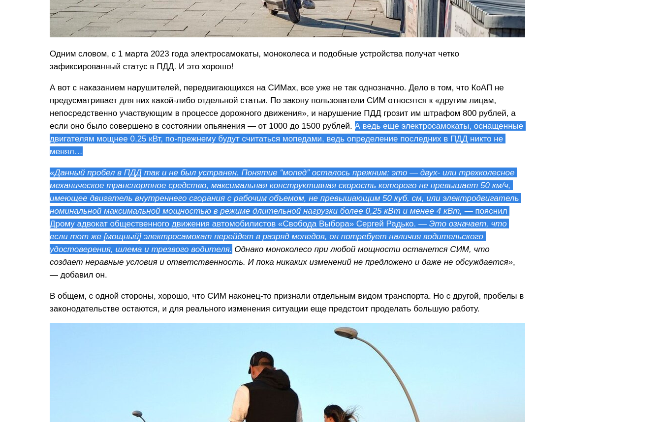>>1494800 Дегенерат, в пункте про СИМ явно прописано, что элетросамокат - это СИМ, и похуй, сколько там у него ватт, лишь бы ехал только 25 и весил меньше 35. А вот пункт про механические ТС работает, если ты едешь быстрее 25