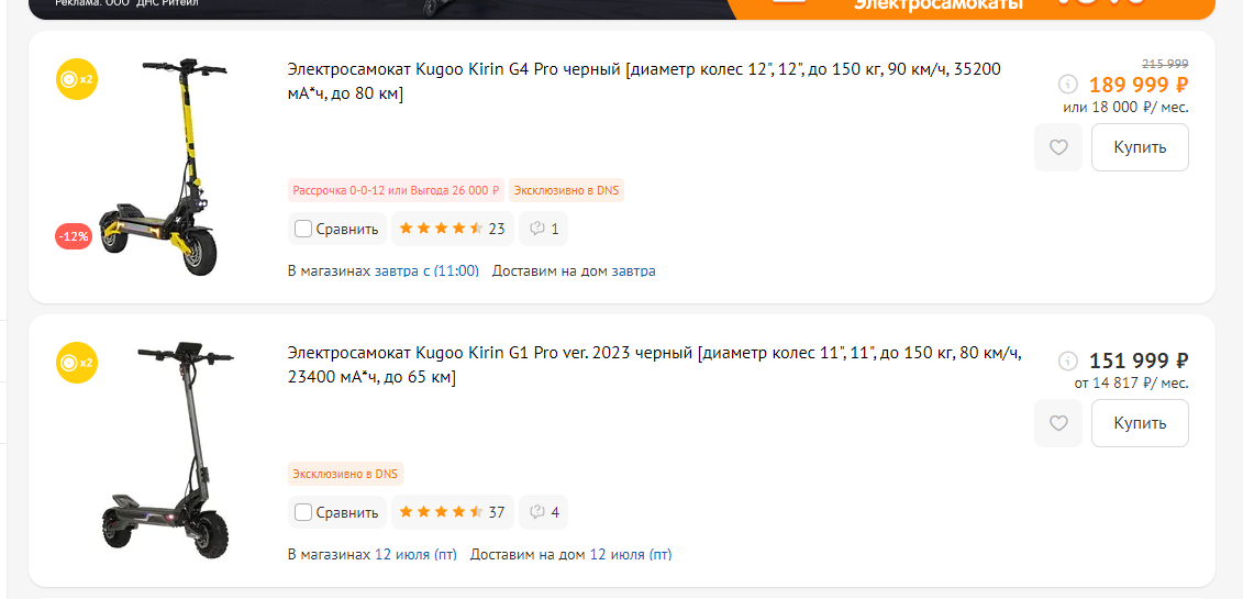 Помогите выбрать самокат для летних поездок на работу. Из основных требований: - колеса 10-11" надувные (не полнотелые) - двухподвес - полноприводный 2х1000вт или монопривод 1х2000вт - батарея больше 1000вт\ч - цена в районе 1к$ Пару дней пошерстил рыночек, подобрал две подходящие модели - Joyor s10-s и Kugoo kirin g2 master. В целом батареи, мощность движка и конструкция у них плюс-минус похожи, из разницы: - у куго подвеска на амортизаторах, у джоера эластомерка - у куго есть рекуперация, но механические дисковые тормоза, у джоера дисковая гидравлика но нет рекуперации - джоер 27 кг, куго 33 кг Что лучше взять?