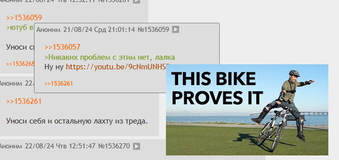Почитал вас ебать вы смертники больше 15кмч на этой хуете ездить по городу. Я бы не рискнул да и в целом это самый ушлепанский вид транспорта - мелкие колеса, хуевая развесовка, уебанская тяга и дохнущие аккумы. Моноколесники вообще похожи на пикрил2 и там сразу ебалом летишь в пол на большой скорости когда ты газанул и он перегрелся просто ахуенно даже лучше чем у мотохрустов. Все таки ничего лучше велосипеда наверное не изобретут, проверенная классика сделанная дидами век назад в виде дорожного велика с 28 колесами актуальна всегда. Ах да, это ебучее барахло имеет предательскую функцию садиться в самый блять неподходящий момент, любая абсолютно любая нештатная ситуация в дороге и все ты проебался и ищи где зарядится или доехать на от. Даже какая-нибудь стрида это шедевр инженерной мысли по сравнению с этим говном, даже кама советская это пиздец техника. Пикрил 3. Короче у меня осталось очень негативное впечатление о самокатоговне, а на моноколесах я не хочу выглядеть как чп из уток. Надо где-то более плотно взять стриду наверное этим летом. Но на ней выглядишь как медведь на велике из цирка.
