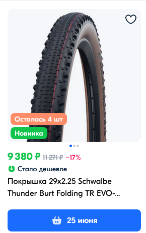 >26 е колеса Швальбе почти новые, старые дешевые, клондайк все в наличии на авито в твоем городе от 2000 р >27.5 1,2 кг клондайк за 5000р, швальбе 7500р обычный, 10 000р эво лайт скин. Хоть 26-е колесо переднее бери, дешевле выйдет
