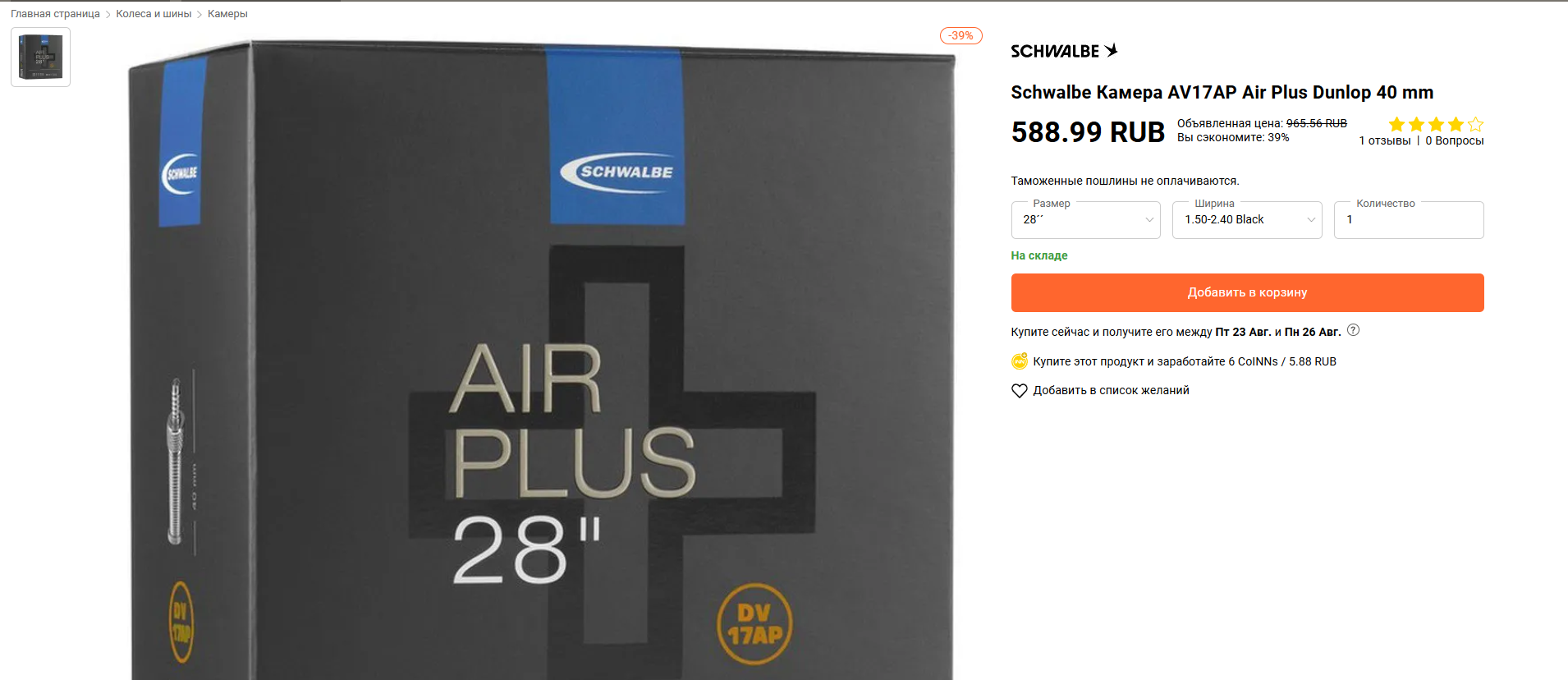 Купил толстую камеру Schwalbe AV17AP. Размер 37/47-622/635. Масса 300 г, тогда как масса стандартных 150 г. Толщина стенки 1,20-1,35 мм, а у стандартных 0,80 мм и менее. По цене как дешевые покрышки, продается только в Спортмастере.