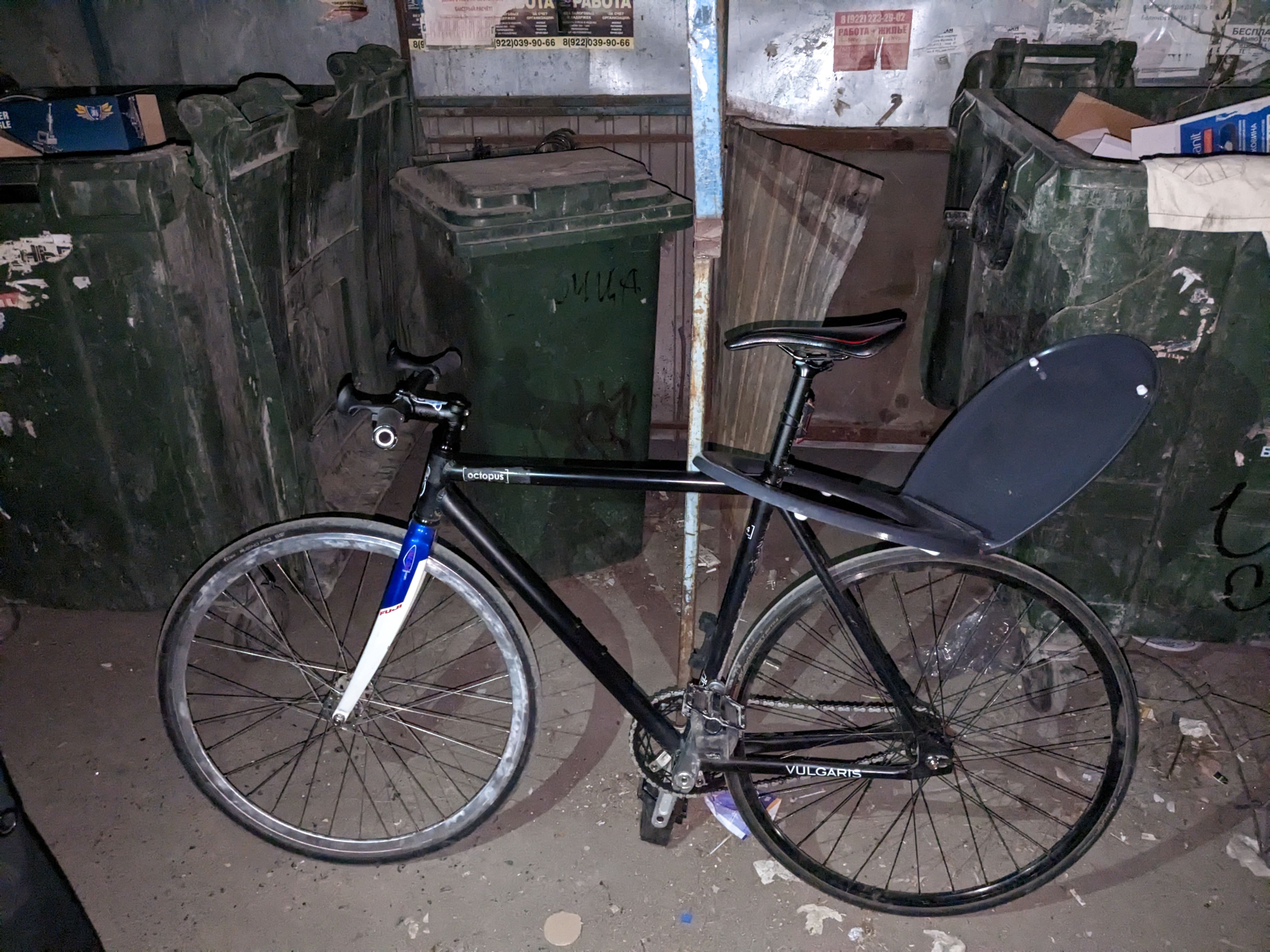 Думаю поставить вместо палки руль борян с тормозными ручками (и китайкартоновую вил очку). С одной стороный будет эродинамично, с другой стороны проебётся уникальная всратость моего дедовела - будет ещё одна тонкоколёсная повозка с рулём боряном.