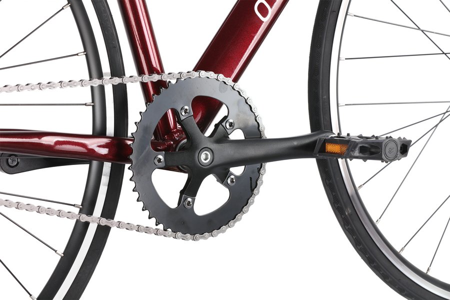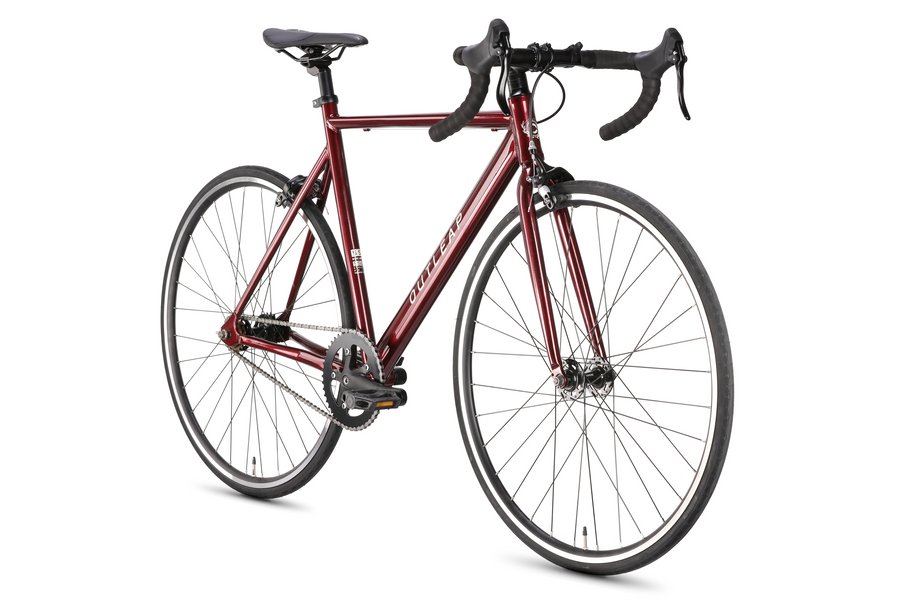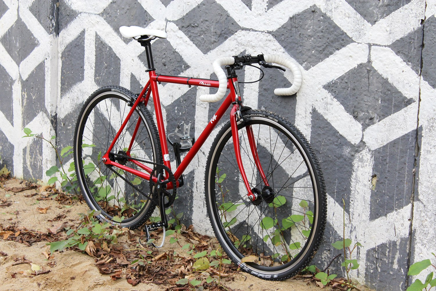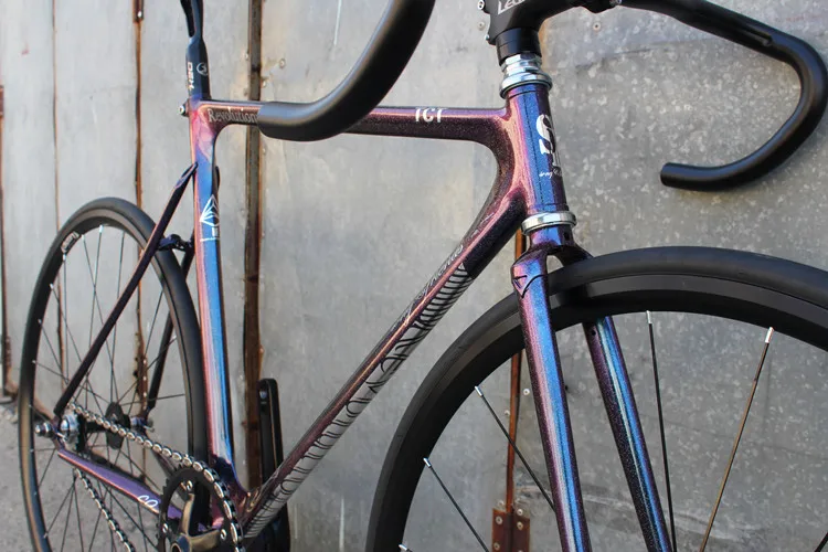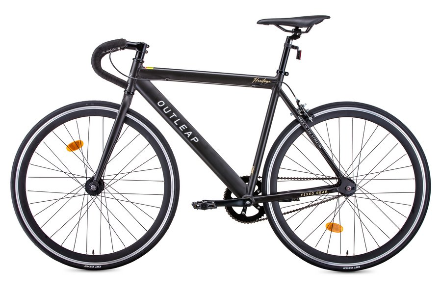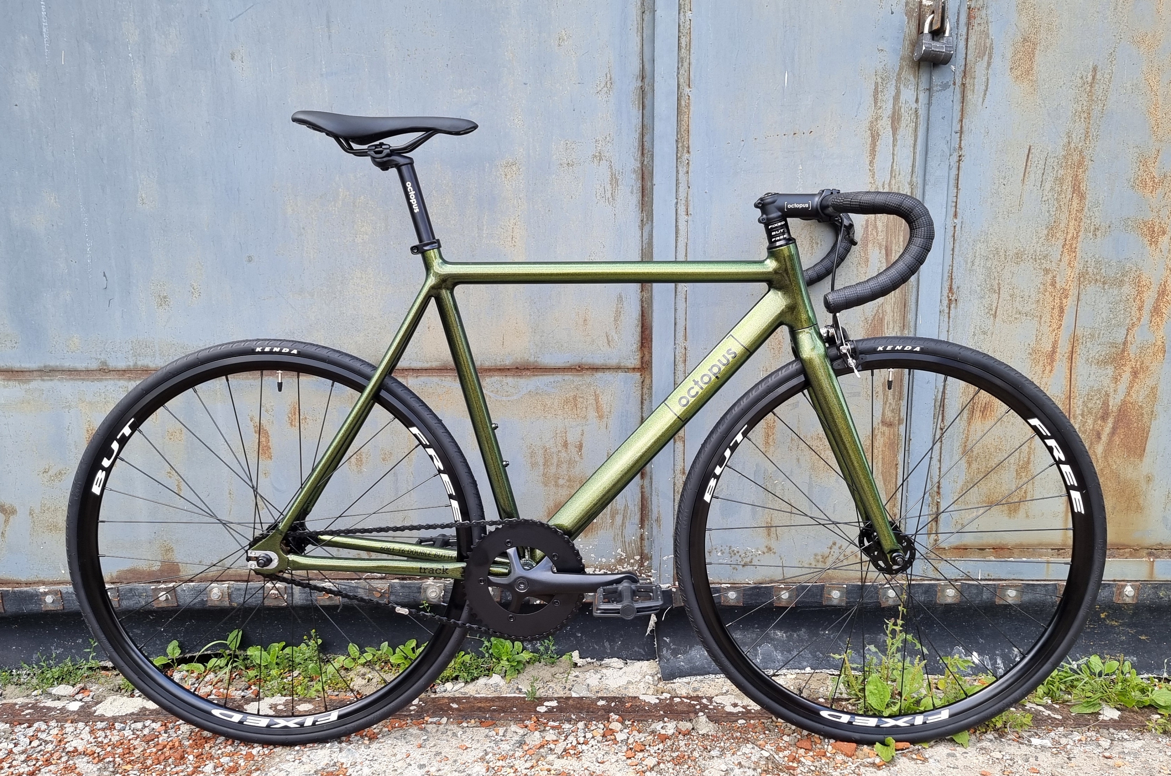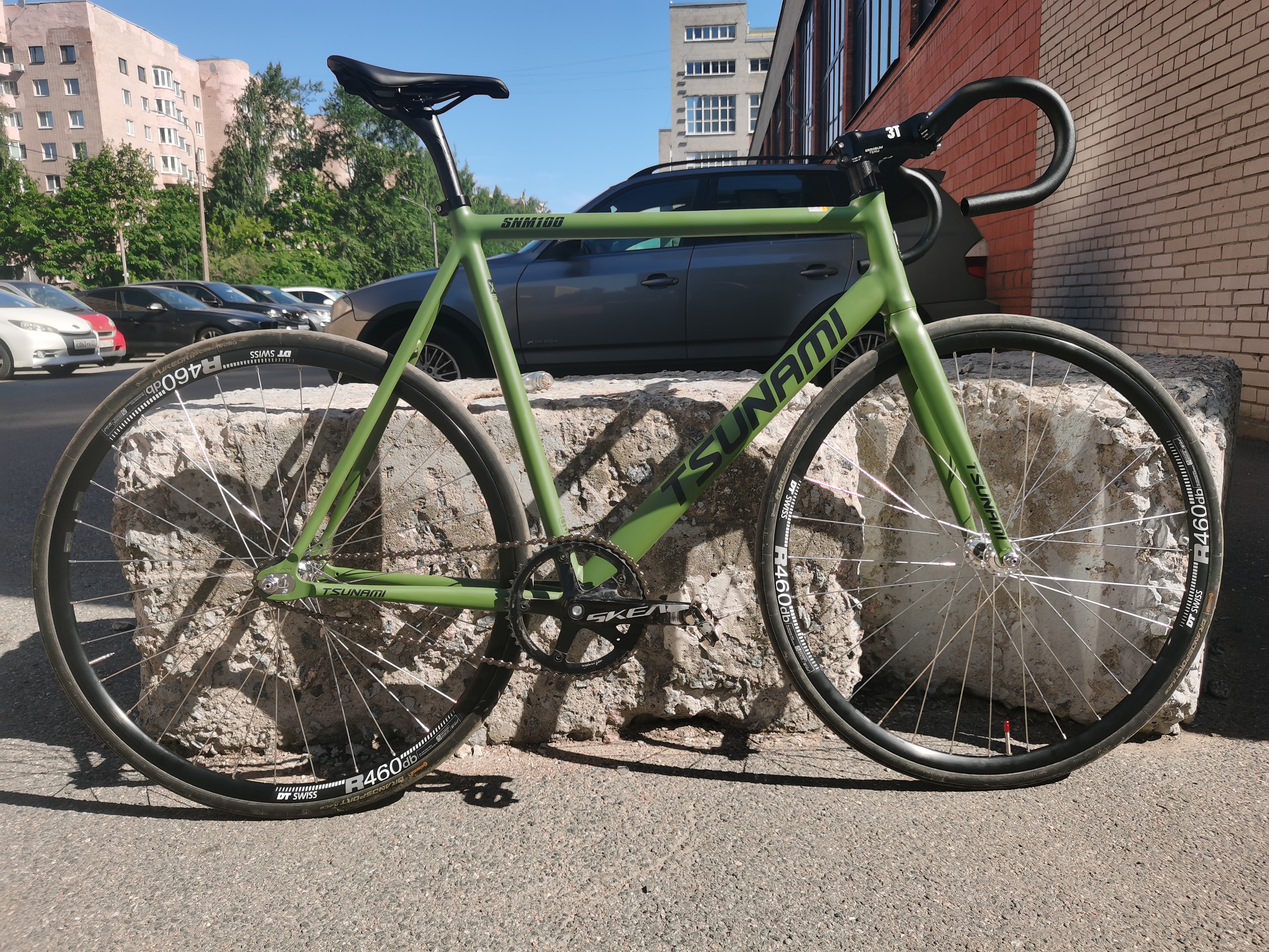 Алюминиевая рама, двойные обода, шоссейный руль, шоссейные тормоза с шоссейными ручками, никакой древней протухшей насыпи - всё на промах - даже рулевая на промах. Сзади обе две звезды, хочешь на фиксе катайся, хочешь на трещотке.