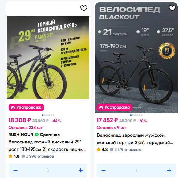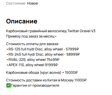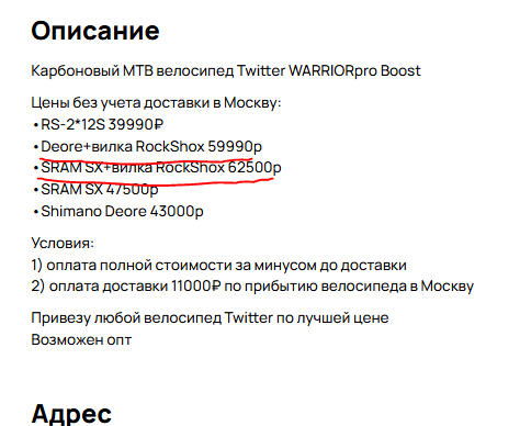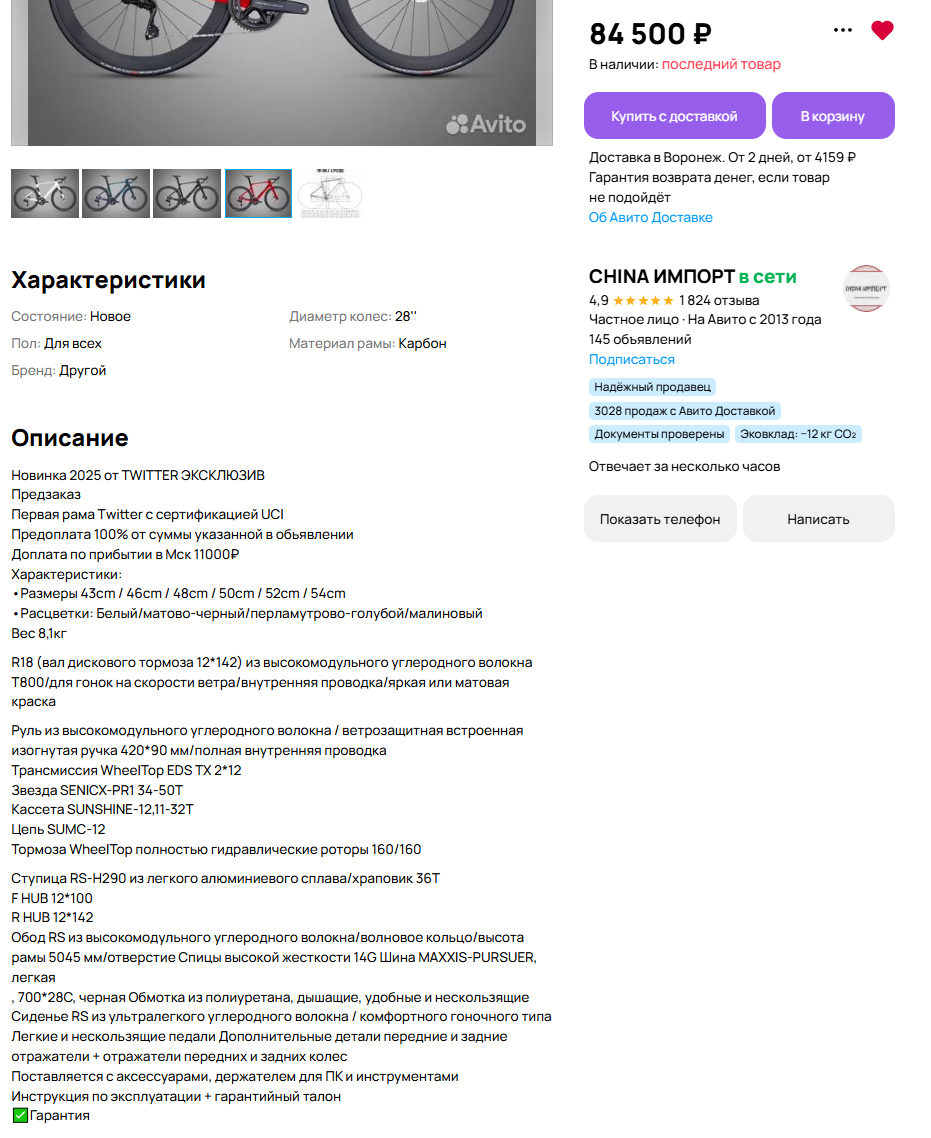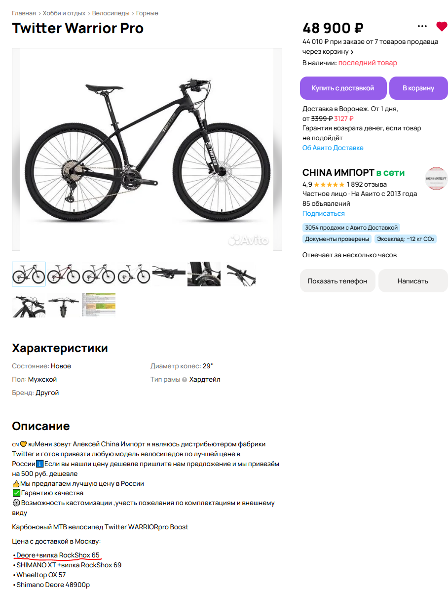 Торговля фирменными велами с нормальных площадок вроде спортмастера/триала/деспорта/альпиндустрии и так далее в РФ сильно хуёвая, по причине санкций. На озоне или авито гораздо интереснее предложения. Тем более Китай санкции не вводил. Поэтому смотреть целесообразно на китайский китай. Твиттер, таймтрай, титанрейсинг, сава, и так далее.