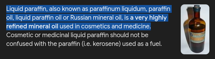 >>1545574 >liquid paraffin это вазелиновое масло Лол. Откуда пошёл этот мемес кстати? Какой-то петух с ютуба сморозил, и безмозглая хуета повторять начала?