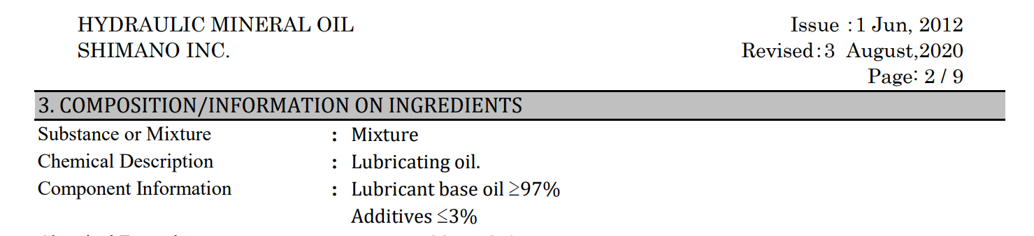 В гидравлические тормоза Shimano заливают минеральное гидравлическое масло типа HLP с коэффициентом вязкости ISO 10 (кинематическая вязкость при 40°C от 9 до 11 мм²/сек). Заливать DOT недопустимо если тормоза работают на минеральном гидравлическом масле.